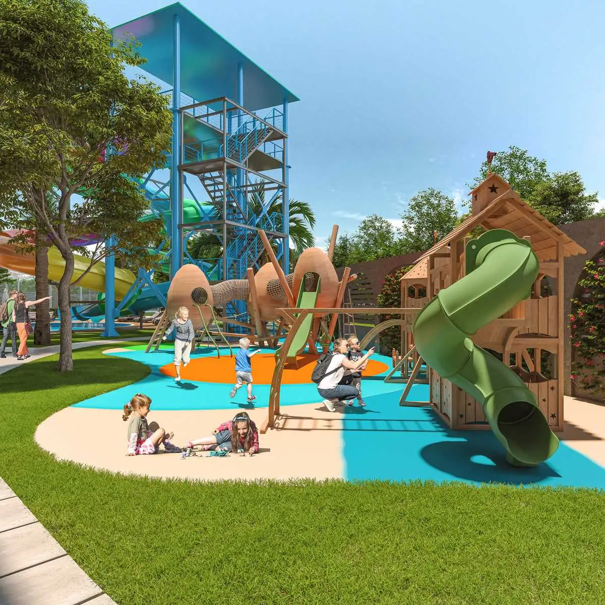 Что в комплексе: Площадь комплекса будет составлять 5000 м², где расположится один жилой блок с развитой инфраструктурой. Жители и гости могут круглый год смогут получать всё то, что требуется для полноценного отдыха класса люкс, не выходя за пределы комплекса.;