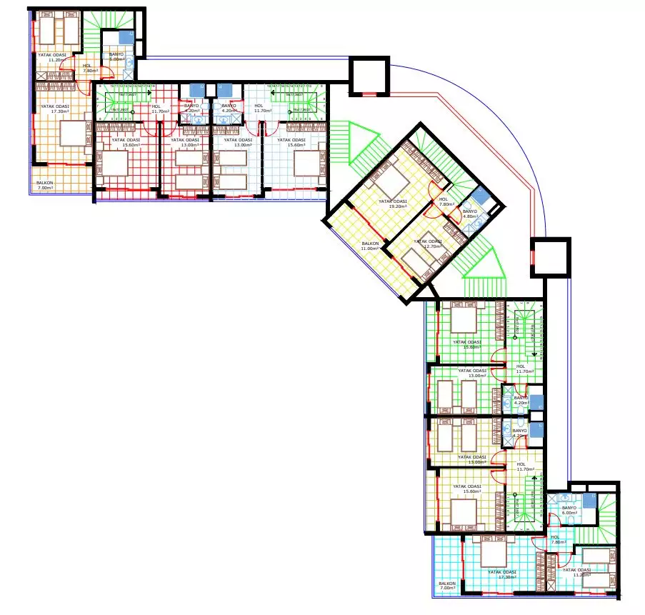 Что в комплексе: Жилой комплекс займет территорию 10.000 м2 и будет состоять из пяти пятиэтажных блоков. Вся территория комплекса будет озеленена декоративными и экзотическими растениями.