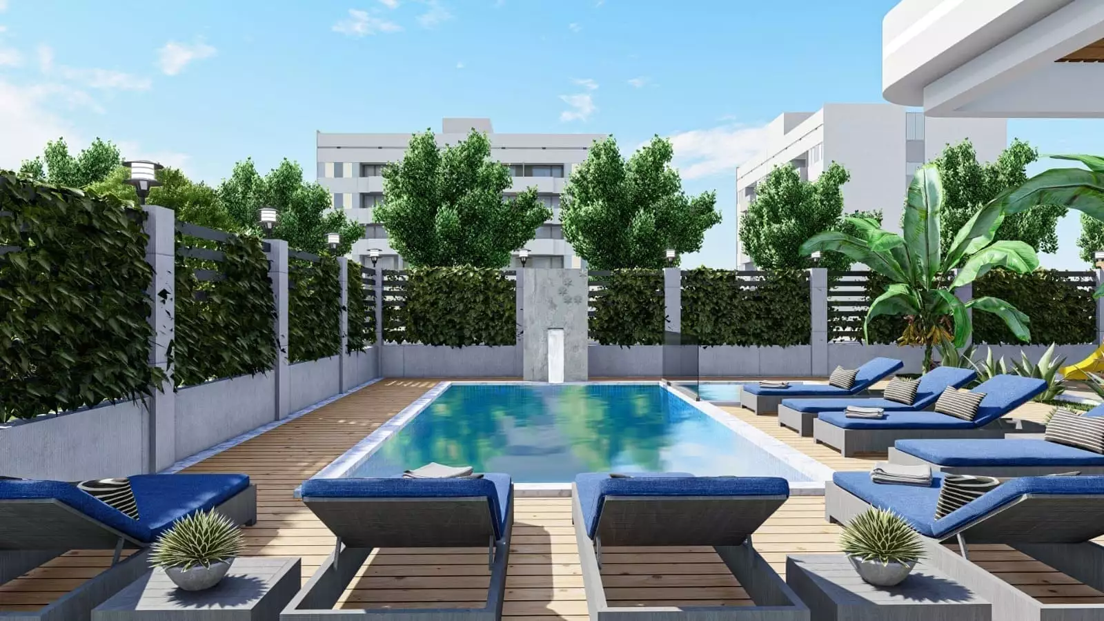 Что в комплексе: На территории площадью 1 127 м2 будет расположен один жилой блок на 36 квартир, открытый бассейн, зона отдыха у бассейна, детская площадка, беседка для отдыха, финская сауна, фитнес, открытая парковка, генератор.