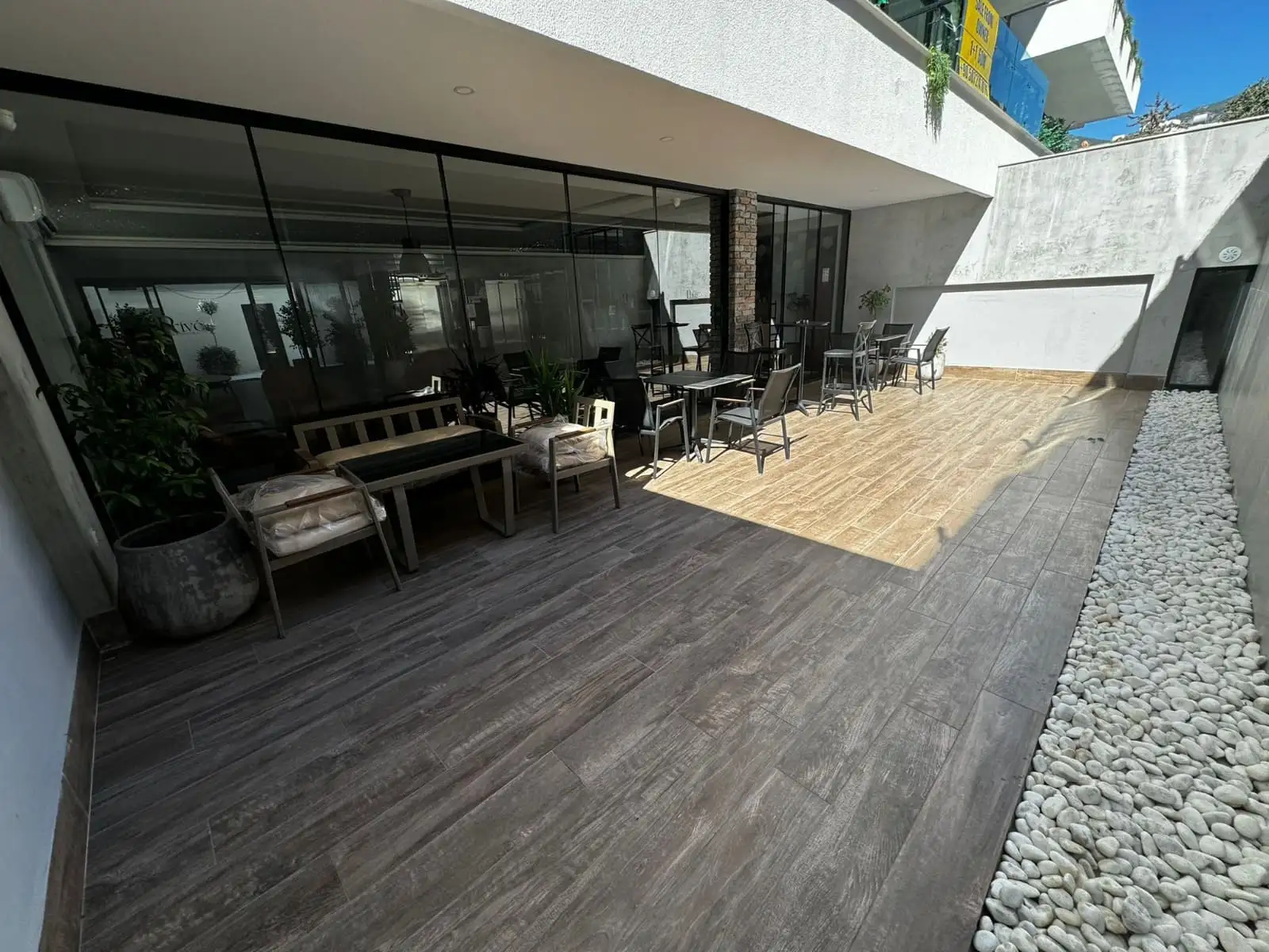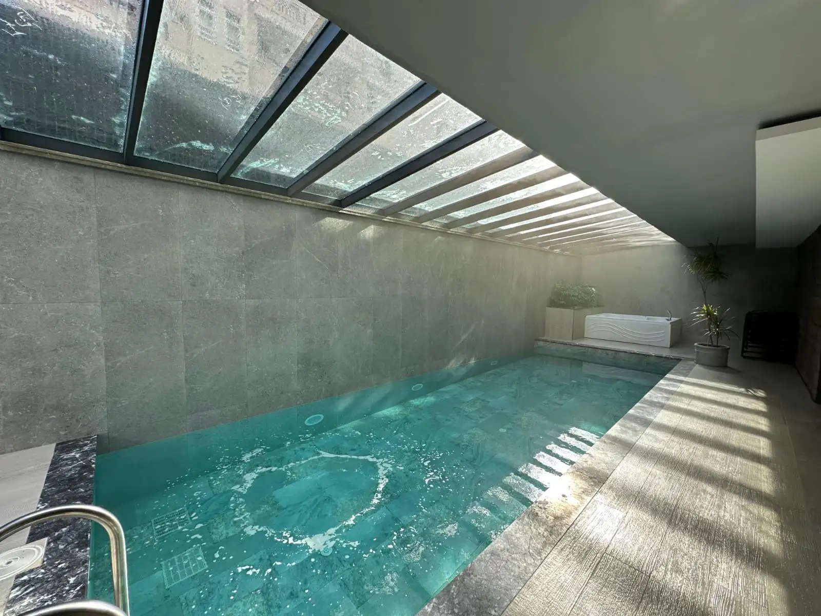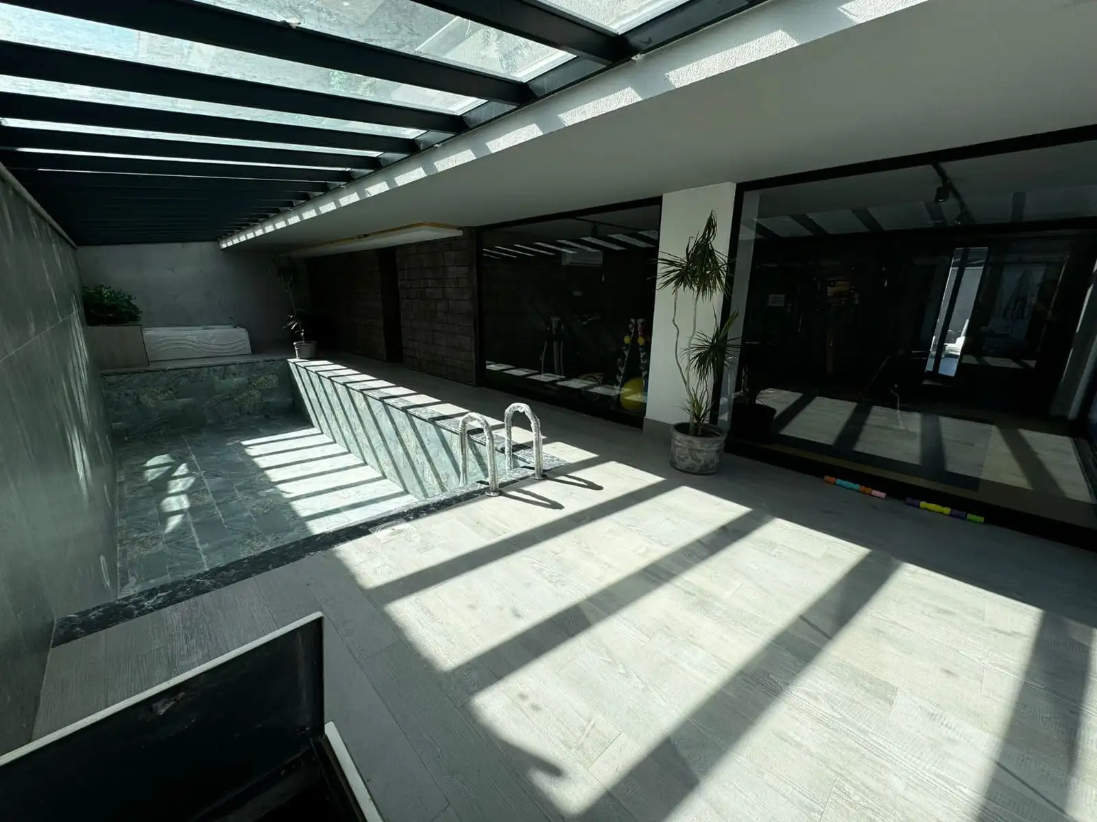 Что в комплексе: Комплекс спроектирован в соответствии с современным архитектурным подходом нового поколения и представлен одним 7-этажным блоком, в котором расположено 48 квартир, с видом на Средиземное море, крепость Аланьи, горы, территорию и бассейн. На озелененной территории комплекса расположен открытый бассейн с джакузи, кафе у бассейна, детский бассейн, зона отдыха и барбекю, крытый бассейн, зимний сад, хамам, финская сауна, фитнес. В комплексе установлена система видеонаблюдения и проведено спутниковое ТВ.