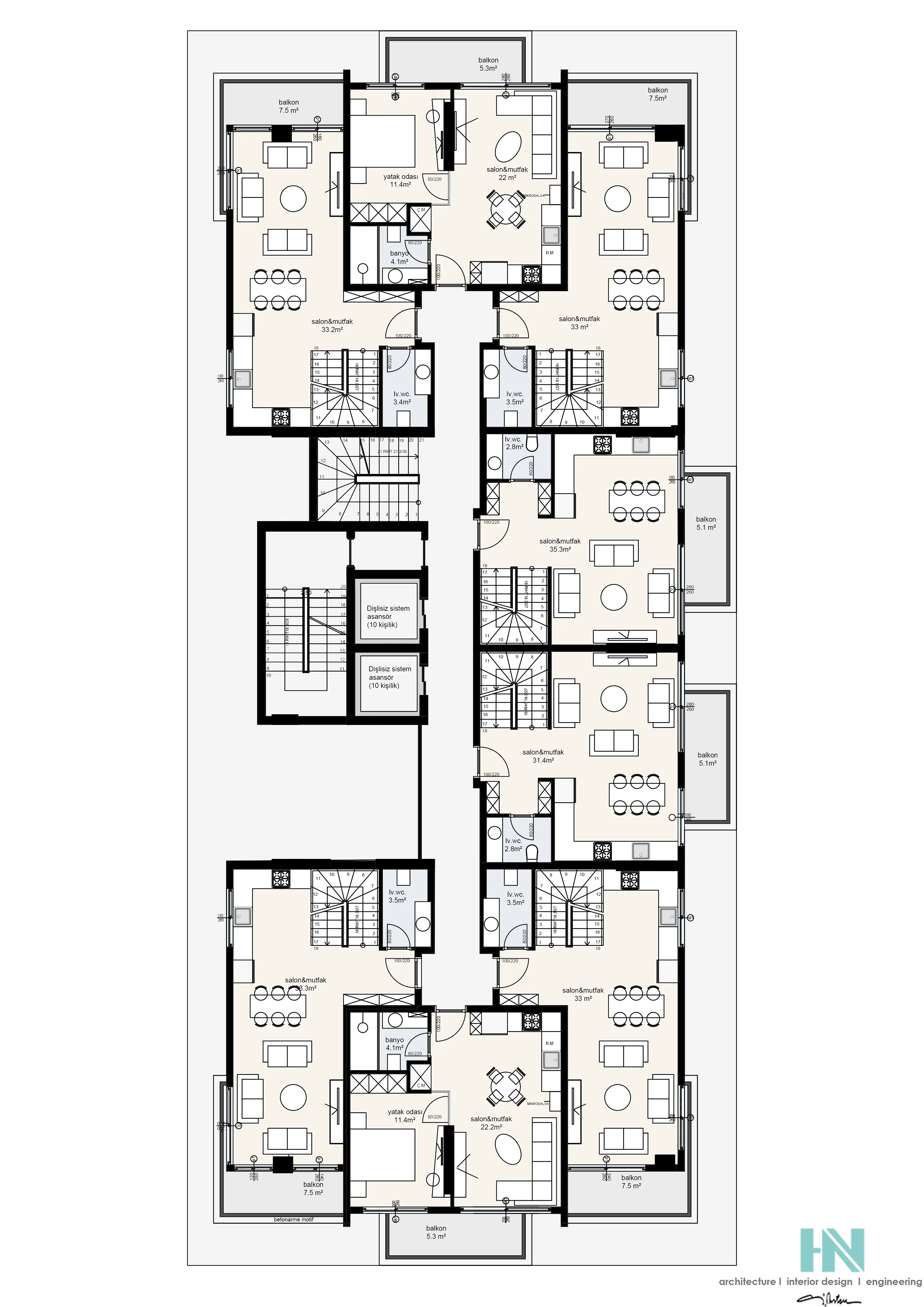 2+1 пентхаус площадью 127 м2 и 140 м2;