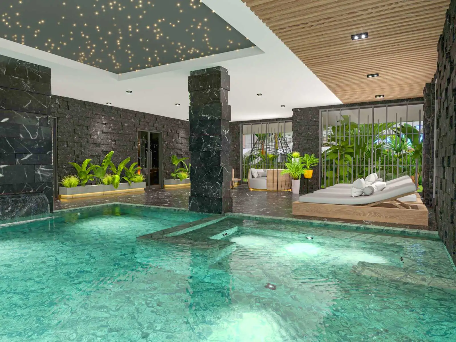 Spa – центр с турецкой баней, паровой и массажной комнатами, а также бассейном;