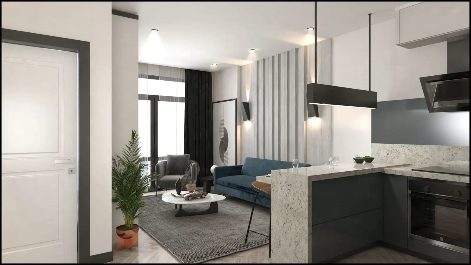 Все апартаменты будут передаваться в чистовой отделке, с кухонным гарнитуром, санузлом «под ключ», ламинатом в спальных комнатах.