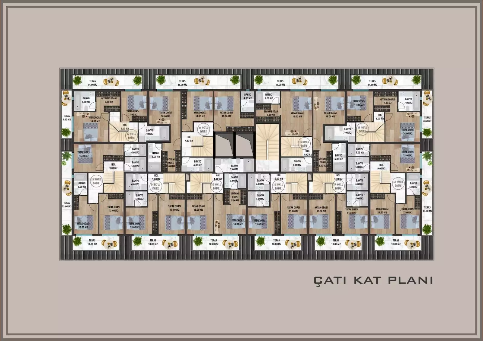 пентхаусы 3+1, площадью 126- 154 м2.