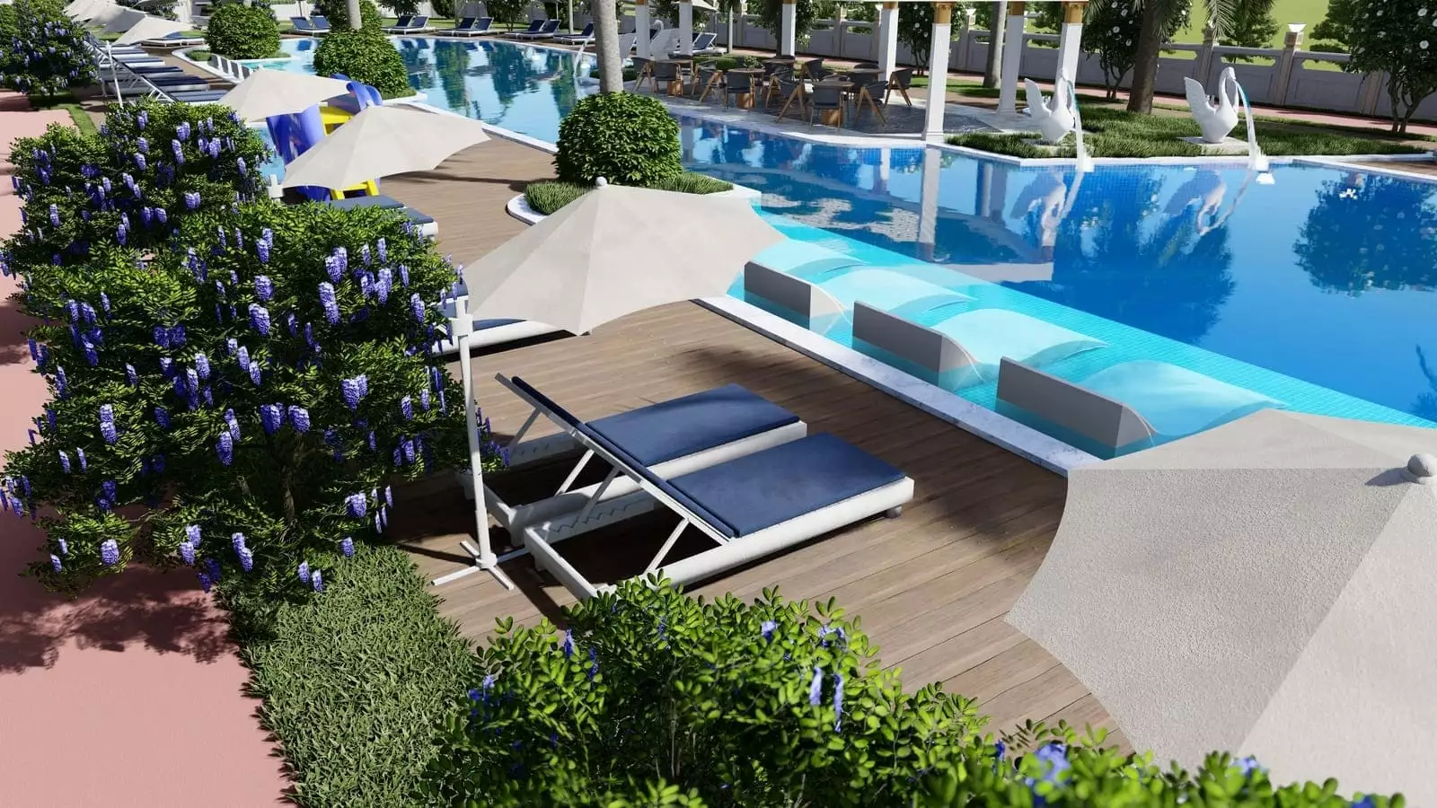 Что в комплексе: Комплекс будет состоять из 4 жилых блоков на 80 квартир. На закрытой озелененной территории будут расположены открытый и детский бассейны, зона отдыха с шезлонгами, детская площадка, комната для переговоров, крытый бассейн, римская парная, финская сауна, фитнес, открытая парковка.