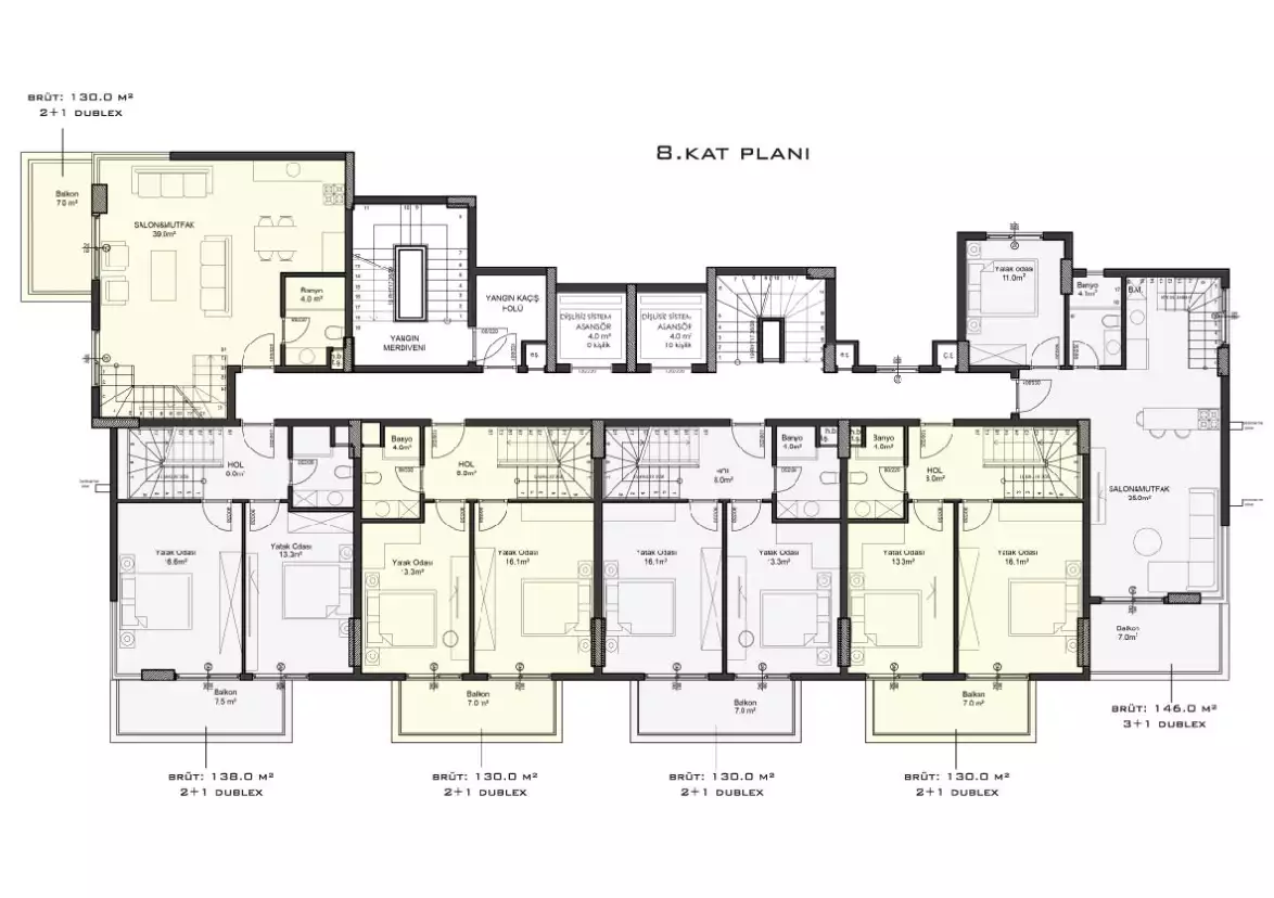2+1 площадь 73 м2 от 130 до 138 м2,