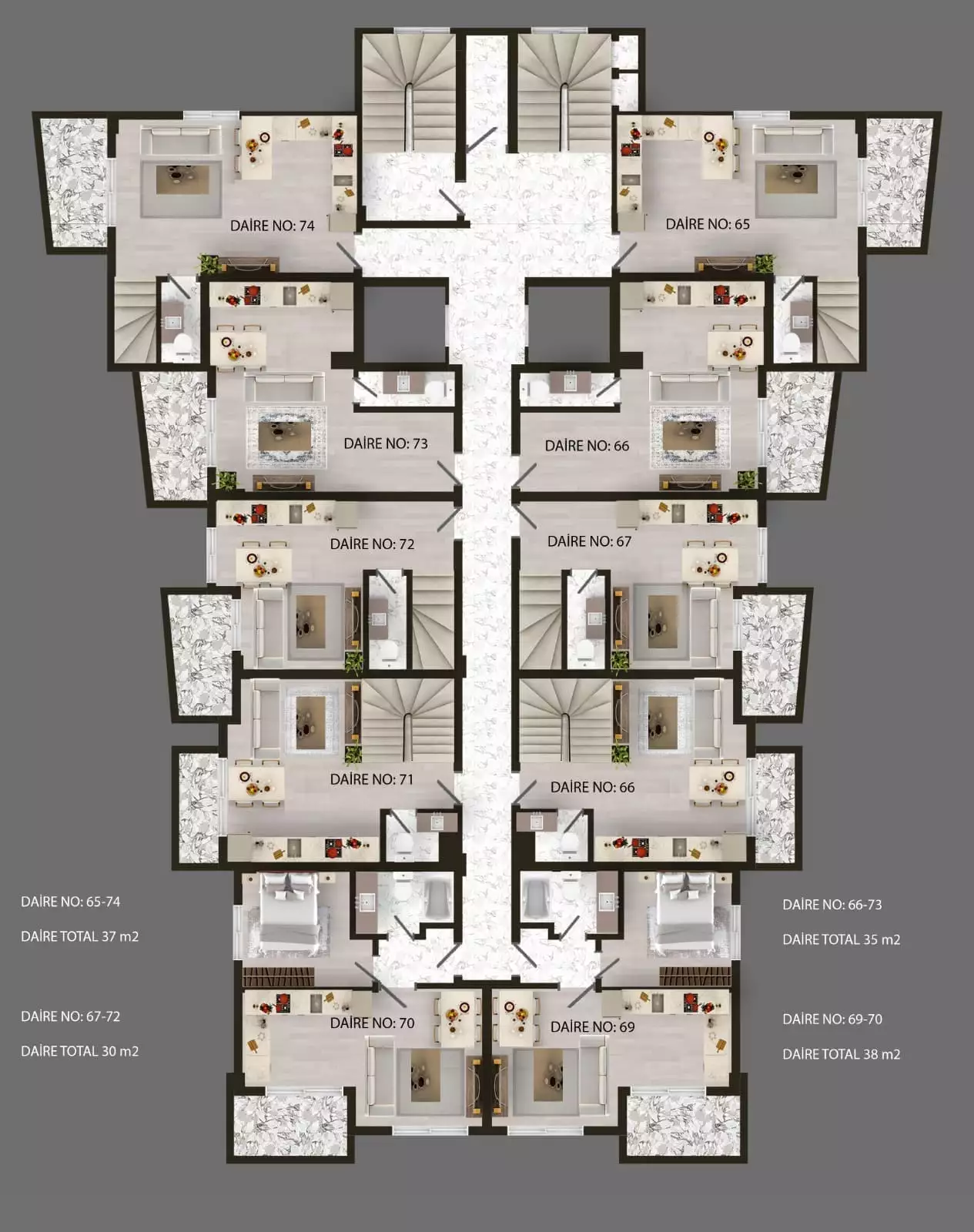 2+1 пентхаусы площадью 100 м2 и 115 м2.