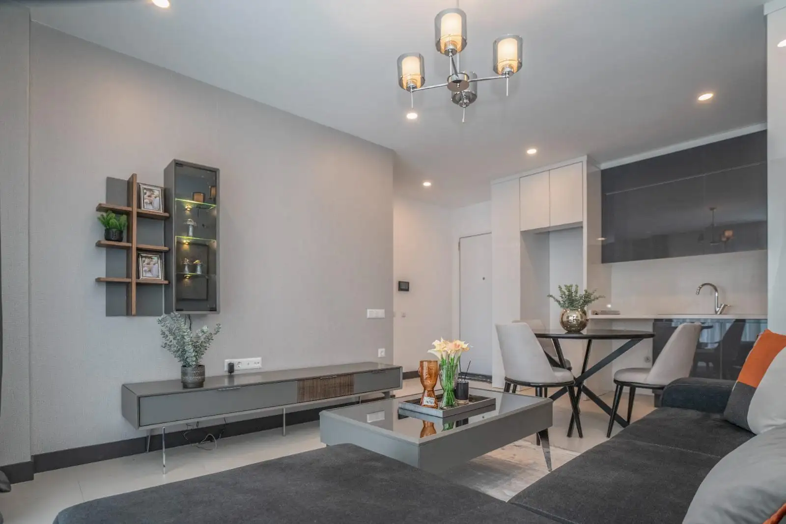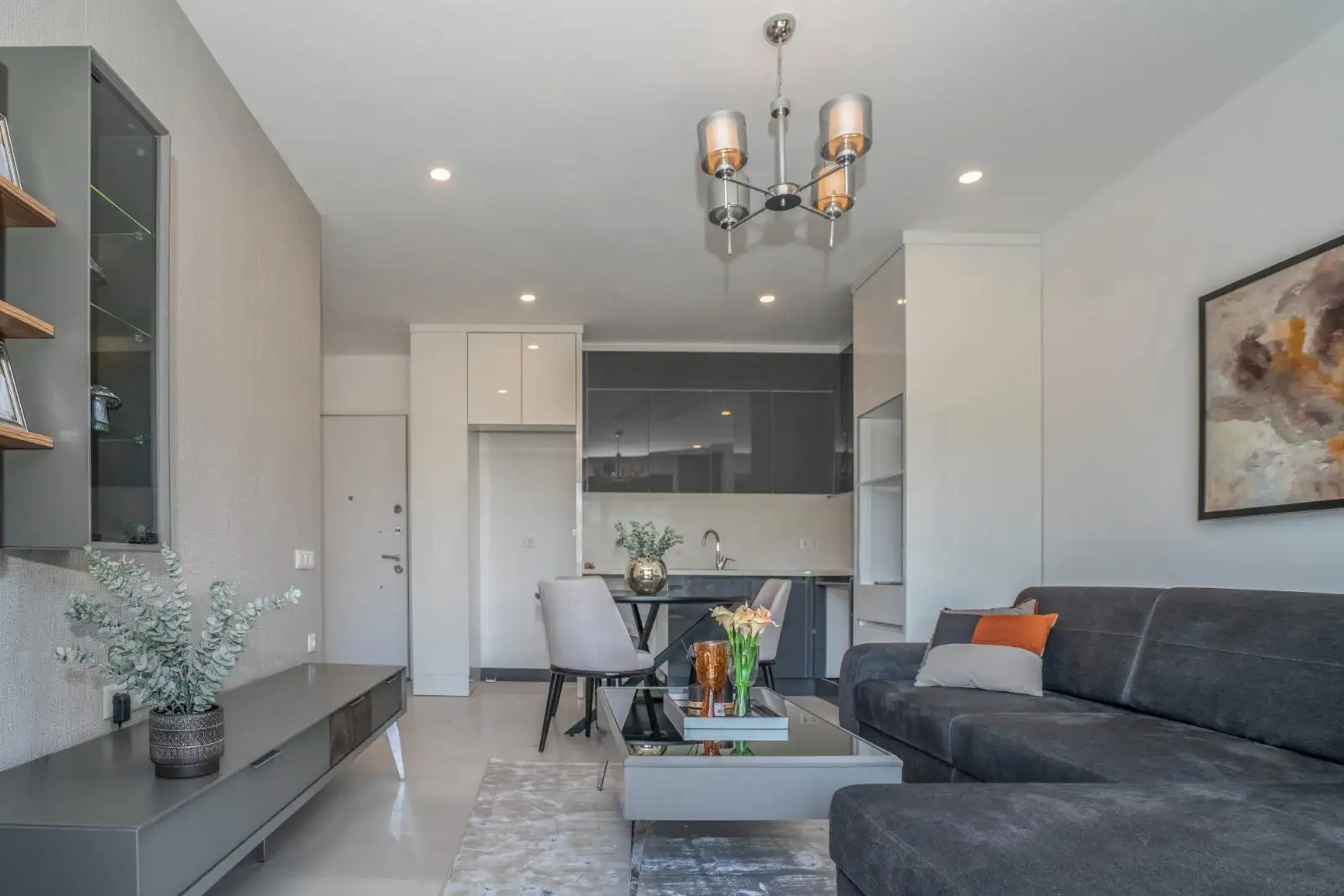 Что вы получаете: Новая светлая квартира 1+1 в современном жилом комплексе, построенном в 2023 году. Интерьер выполнен в современном стиле, квартира обставлена стильной мебелью, но без техники, что дает возможность обустроить пространство под свой вкус.