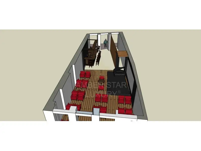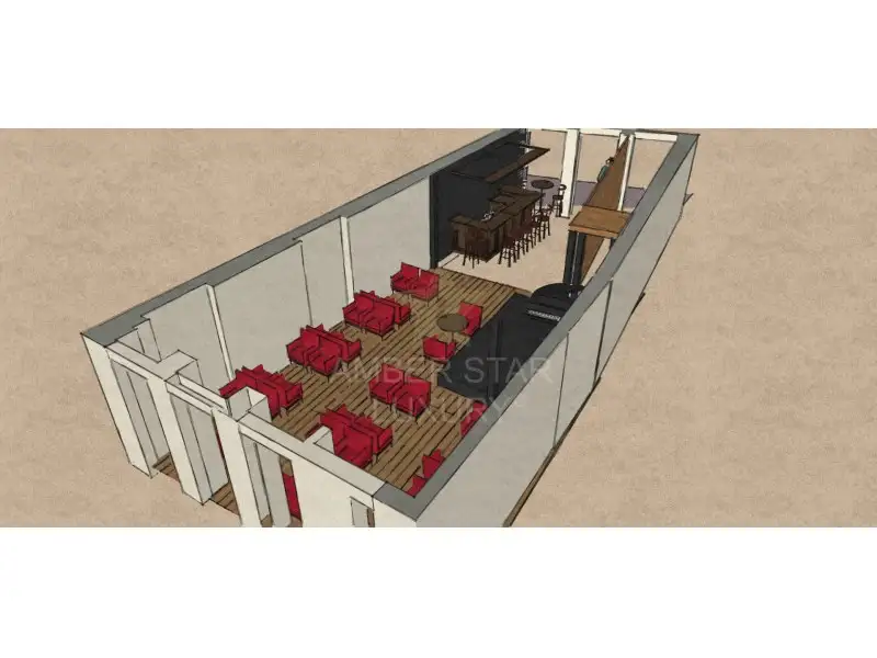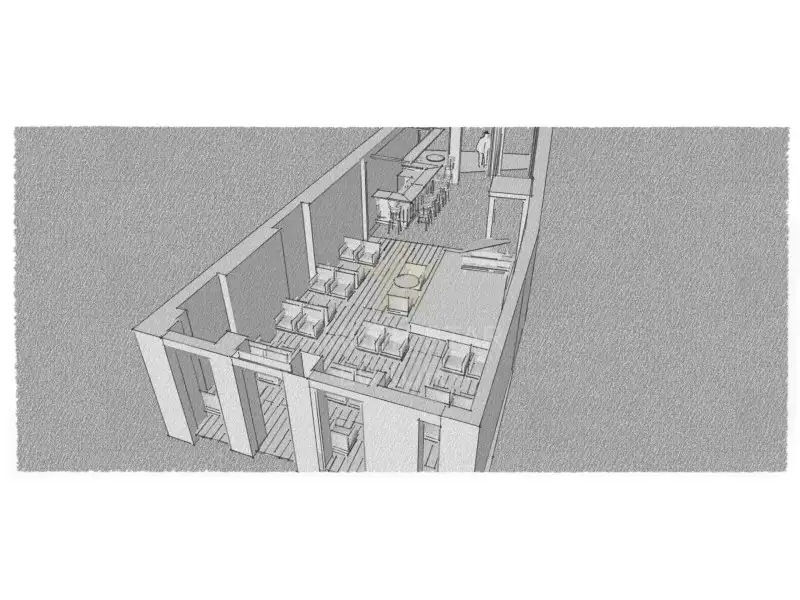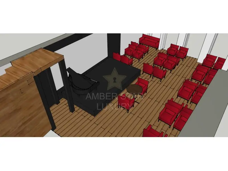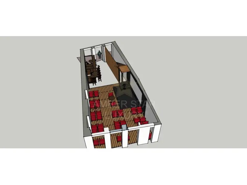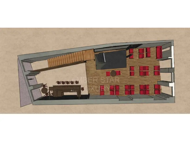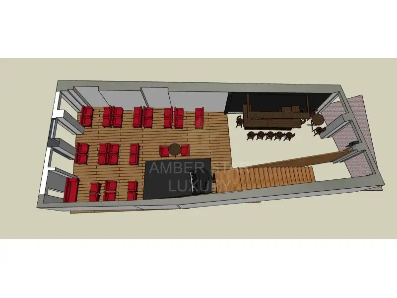 Ресторан расположен на первом этаже и цокольном этаже, и разделен следующим образом: