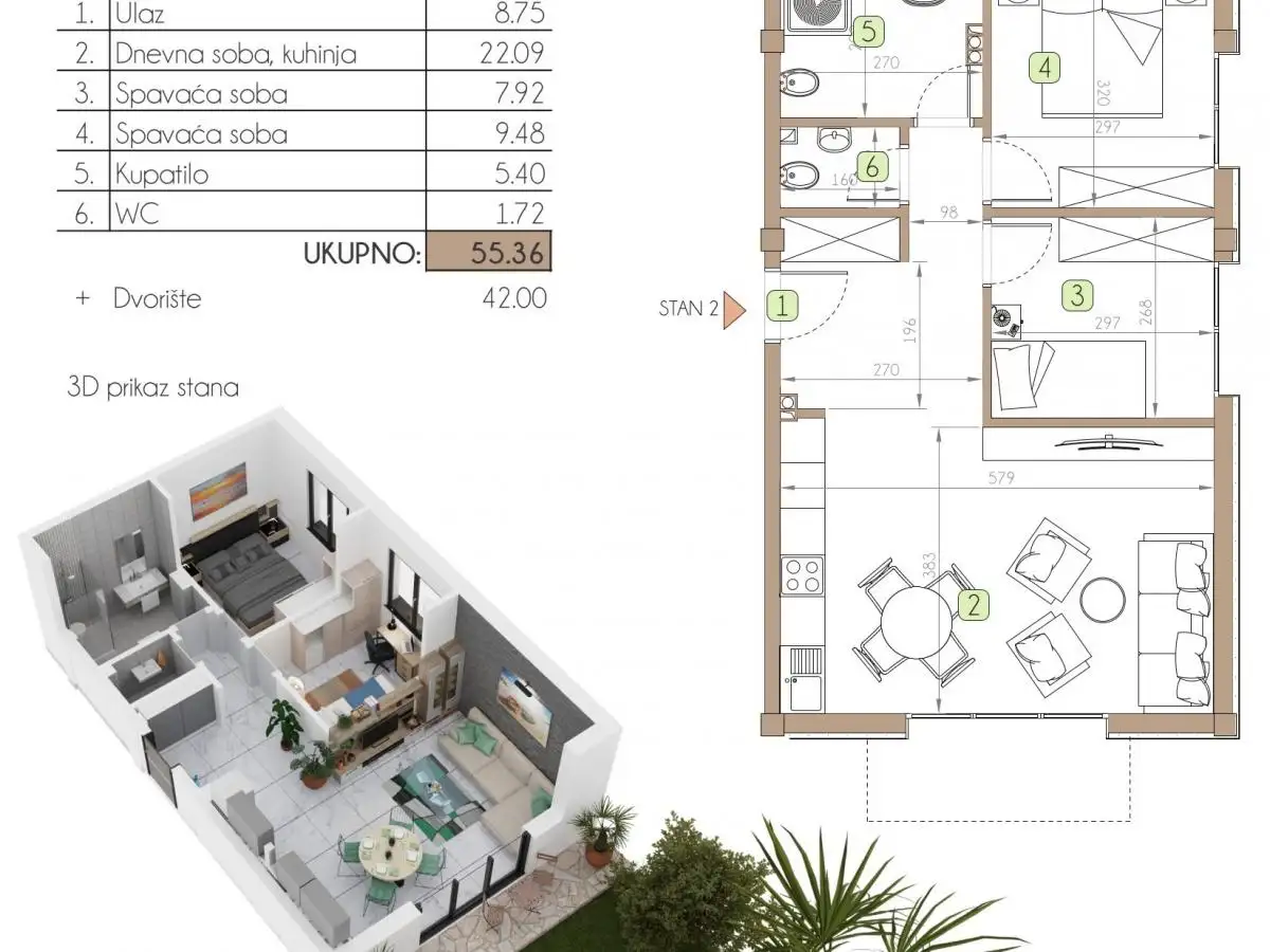 квартиры с 2 спальнями (от 55 м2)