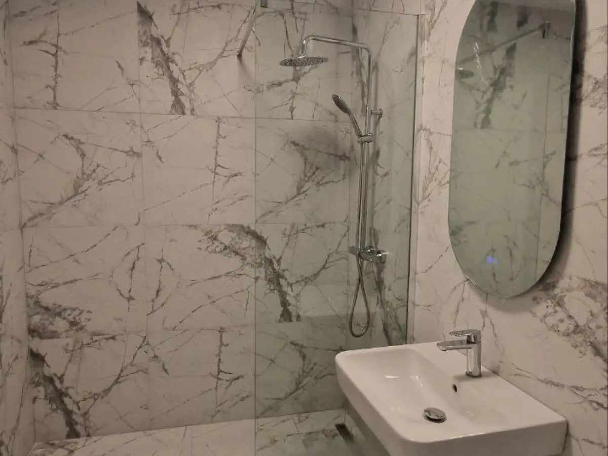 санузел оборудован бойлером, душевой кабиной и сантехникой