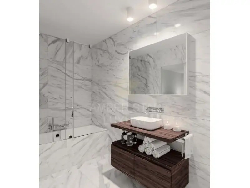 Эта квартира выделяется своей инновационной архитектурой и современным дизайном, гармонично интегрируя природные элементы с высококачественными материалами. Эстетика характеризуется элегантными линиями, просторными открытыми пространствами и утонченными отделками, обеспечивая атмосферу изысканности и комфорта.