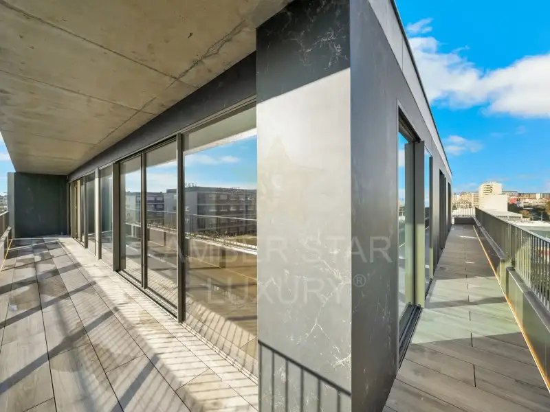 Балконы окружают всю квартиру, обеспечивая отличное естественное освещение и постоянную связь с внешним пространством.