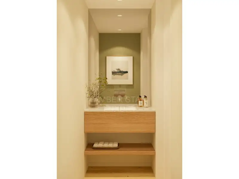 - Ванные комнаты: белый мрамор в_suite, натуральный дуб в социальной ванной, подвесная сантехника;