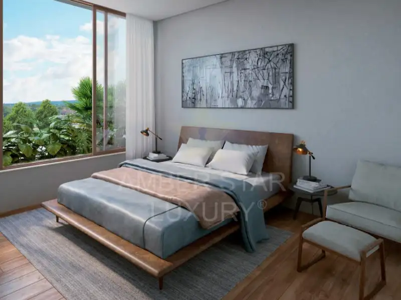 В квартире три просторные спальни, каждая из которых имеет собственную ванную комнату. Все спальни залиты естественным светом и оснащены вместительными шкафами.
