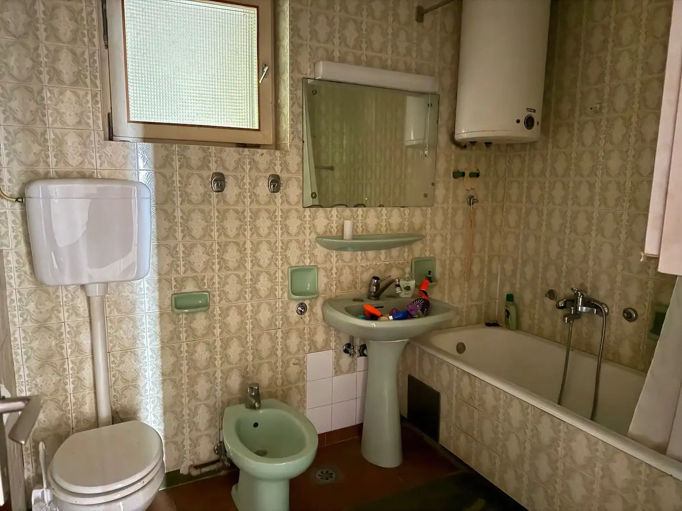 Квартира с большой террасой на первом этаже, парковочным местом в гараже. Из квартиры открывается исключительный вид на море. Терраса и балкон выходят на юг, в сторону Хорватии.