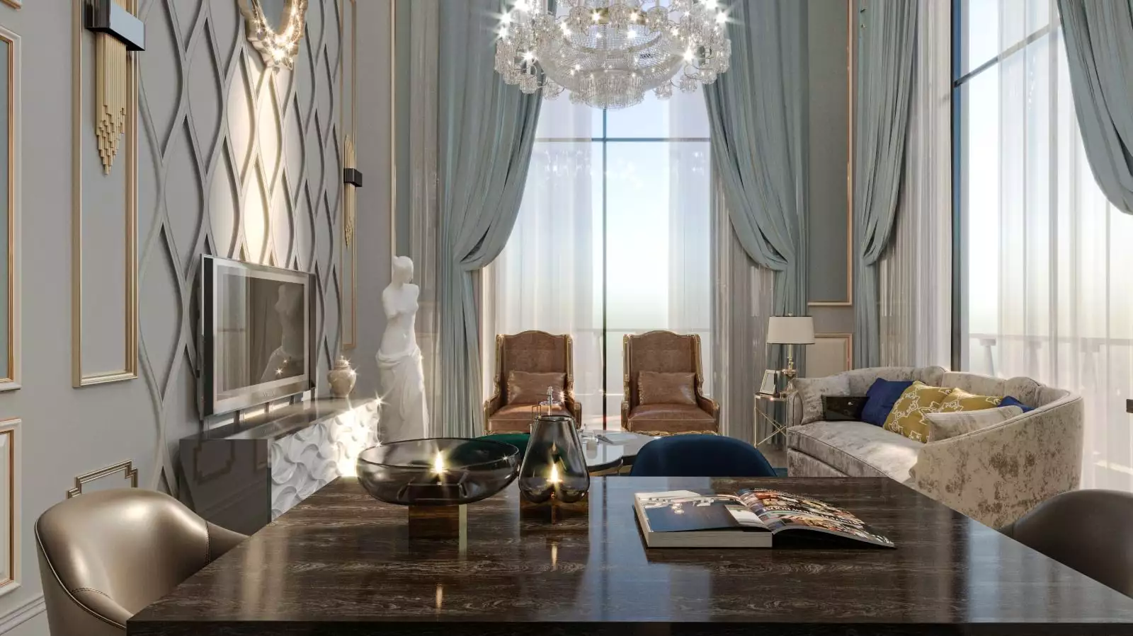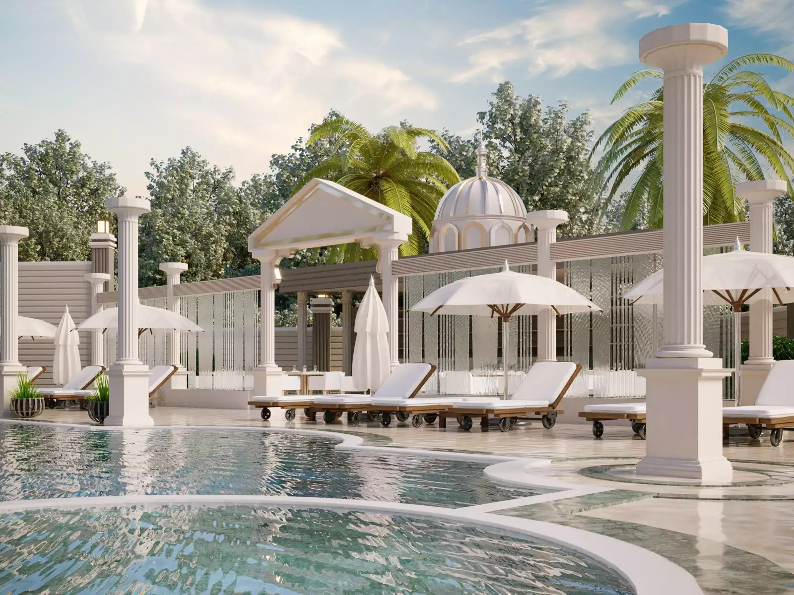 На территории комплекса инфраструктура 5-звездочного отеля: летний и зимний бассейны, турецкий хамам, сауна, римская парная, тренажерный зал, спортивные корты для игры в баскетбол, теннис и волейбол, игровая комната, кинотеатр, крытая парковка, электрогенератор, система видеонаблюдение.