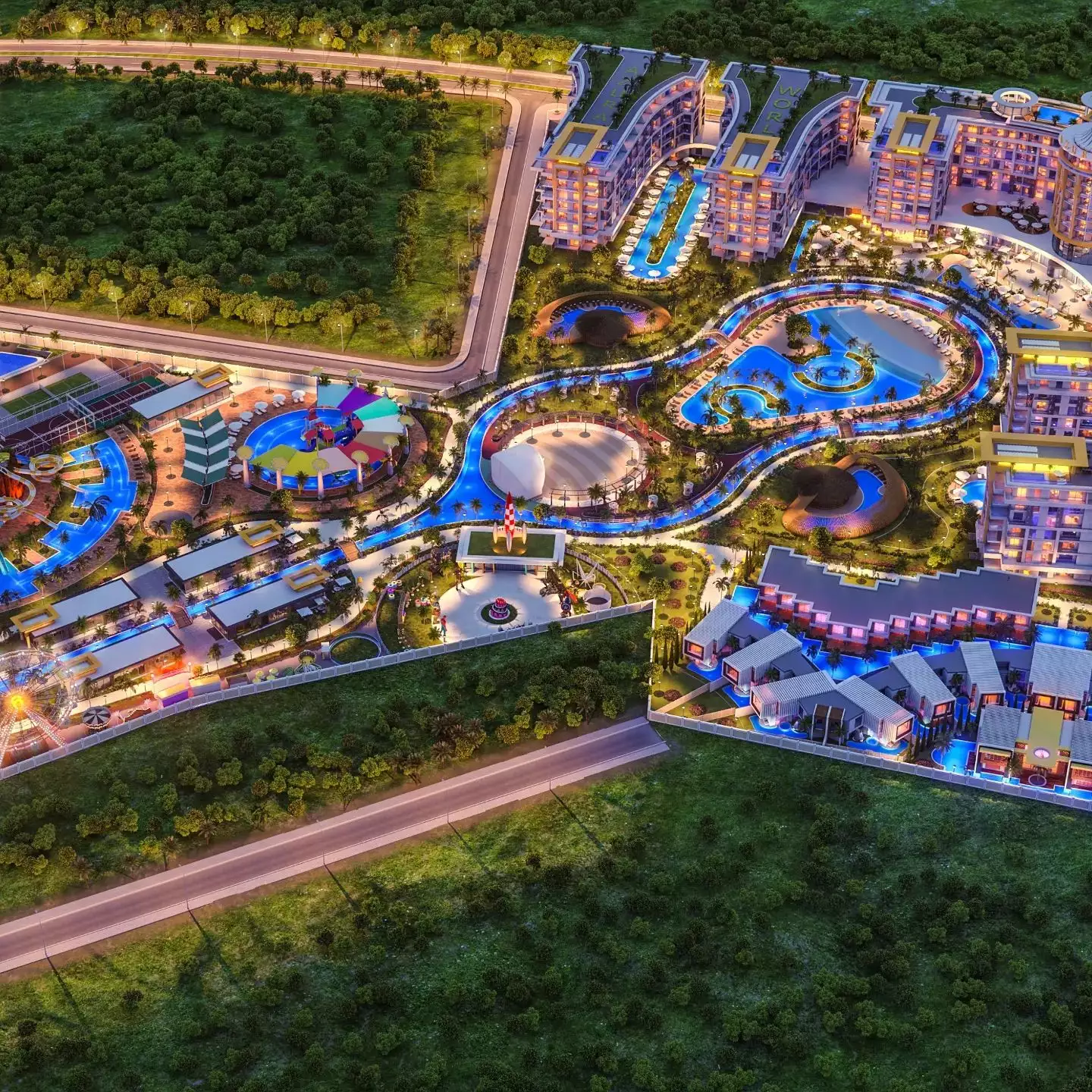 Резиденция будет состоять из роскошного 5-звездочного отеля, жилых резиденций, инвестиционных апартаментов, таунхаусов и вилл, которые будут построены на прекрасной озелененной территории.