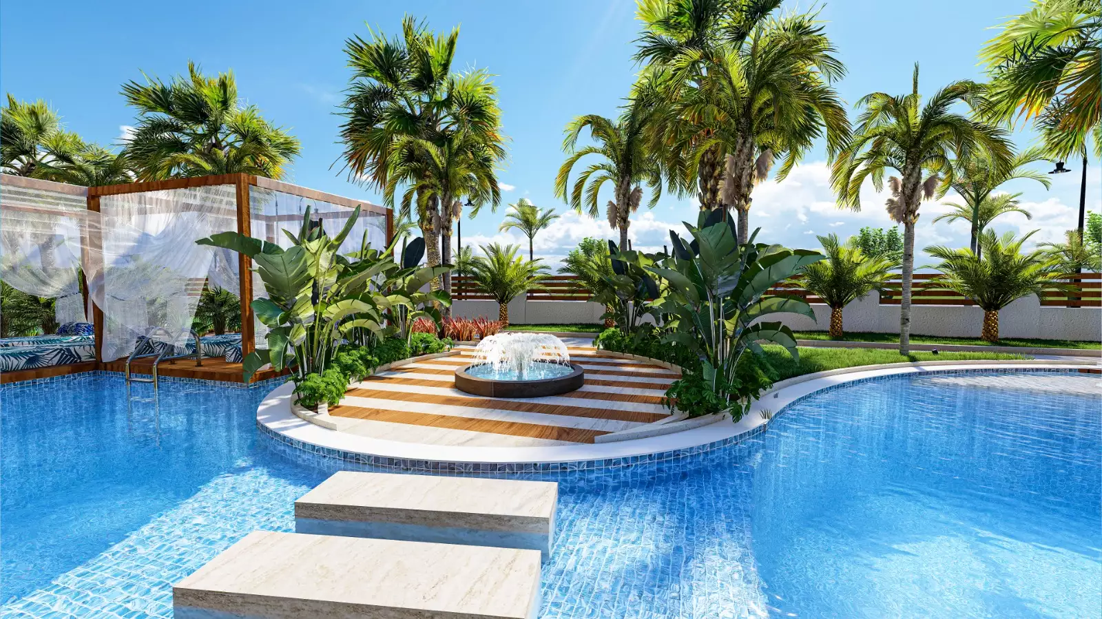Инфраструктура комплекса: открытый бассейн, закрытый бассейн с подогревом, джакузи, детский бассейн, джакузи с подогревом, сауна, тренажёрныйл зал, детская игровая комната, лобби