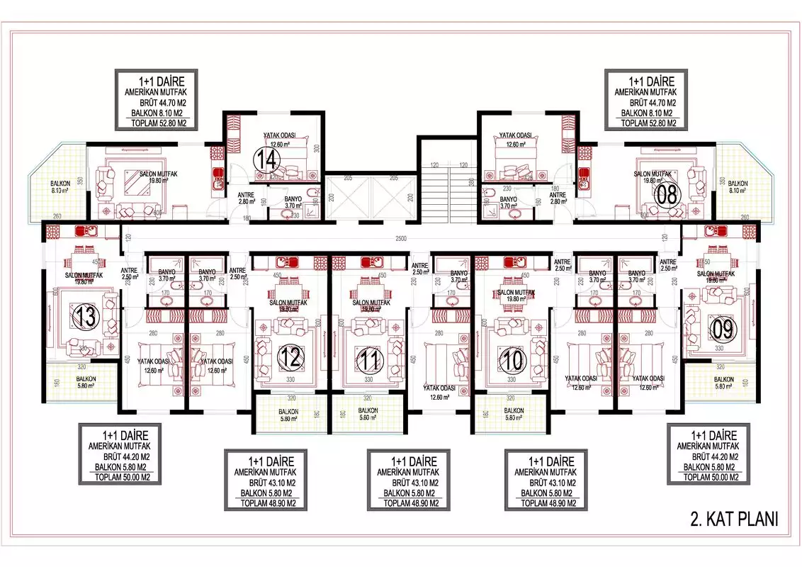 - Пентхаусы 2+1: 111,20 – 127,70 м2