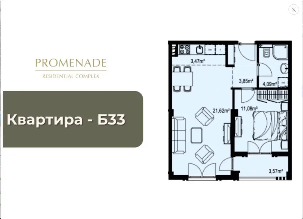 Апартаменты 1+1 площадью 39 м.кв. и с рассрочкой оплаты по индивидуальному графику.