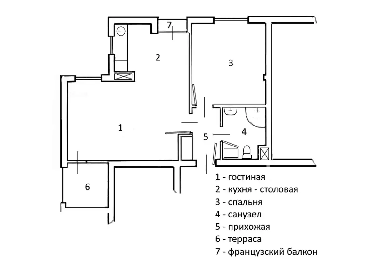 Планировка: спальня с выходом в санузел, гостиная с отдельной кухней (с окном), ванная с тёплым полом, терраса и французский балкон.