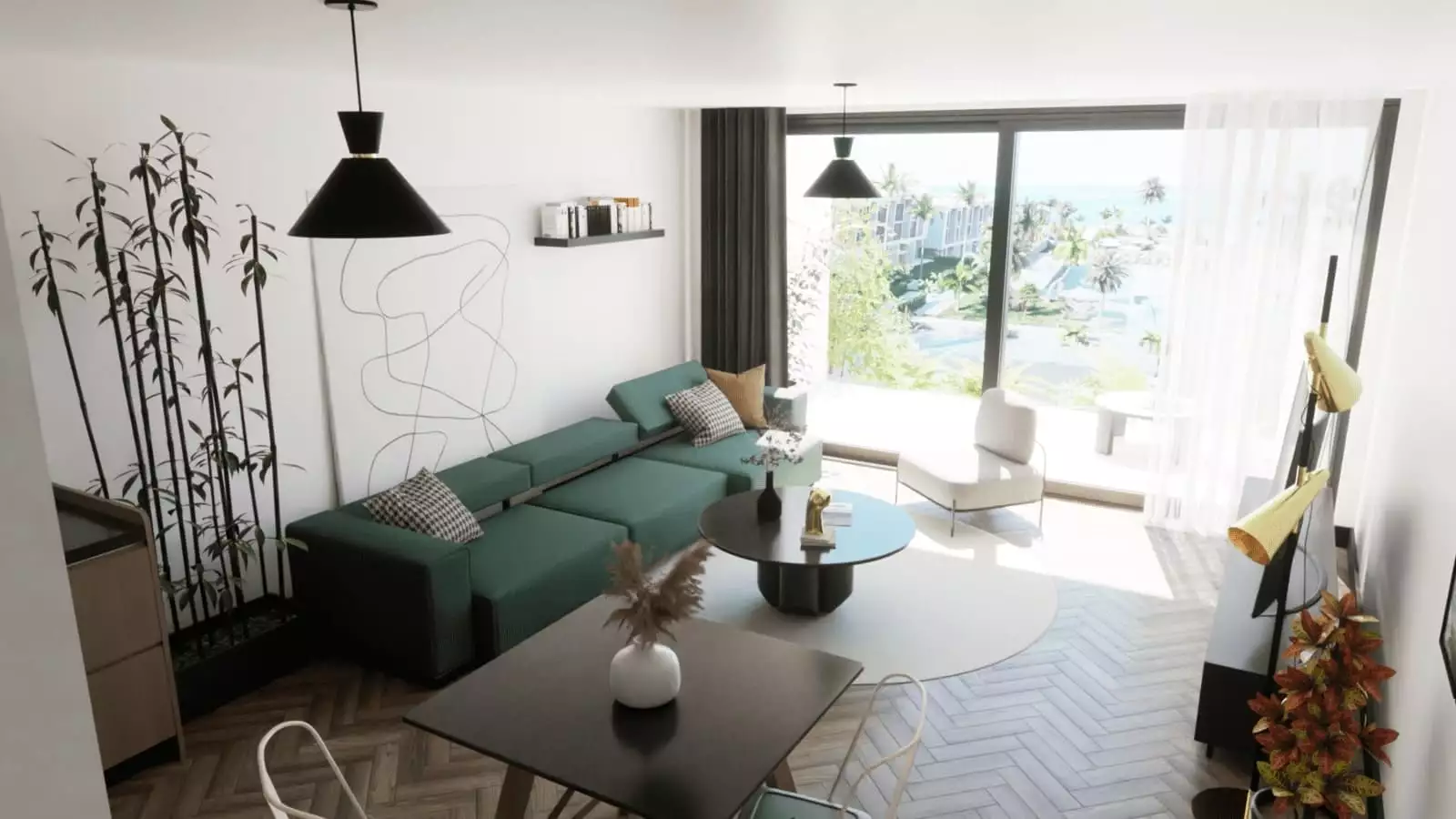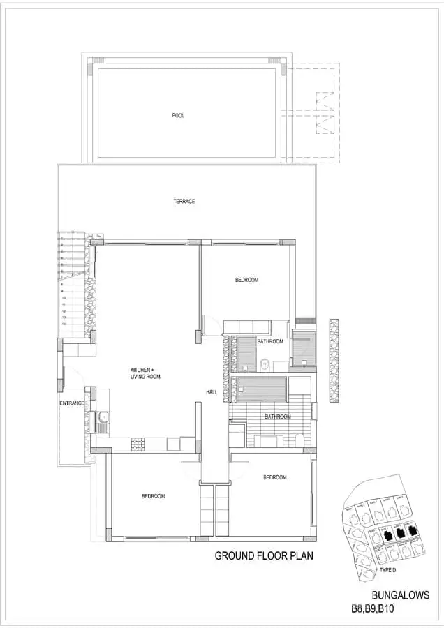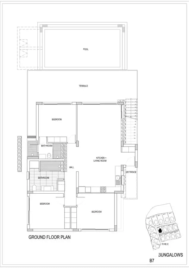 Внутри: К продаже доступны апартаменты-студио площадью 37 м2 (с террасой 12 м2) и бунгало 3+1 площадью 125 м2 (терраса 160м2).