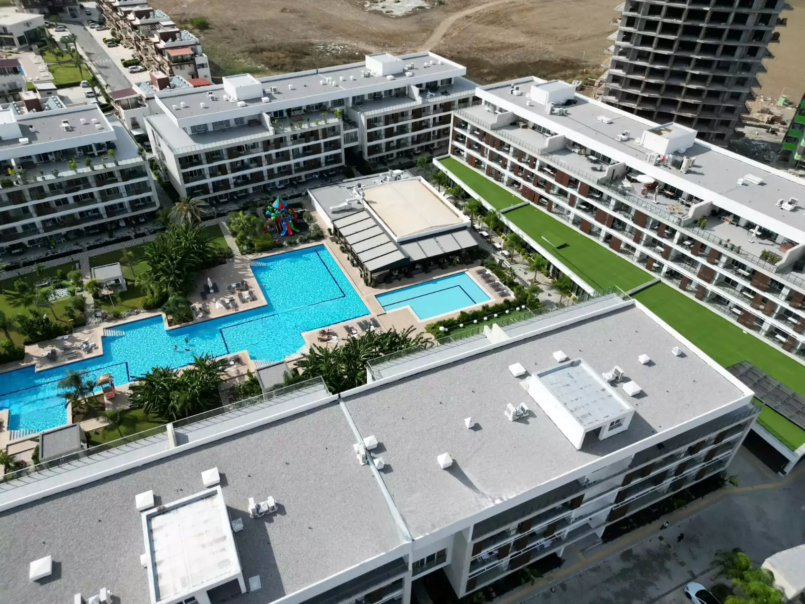Что в комплексе: Комплекс представляет собой резиденцию отельного типа, где вы найдете все, что нужно для незабываемого отдыха. Здесь есть открытые бассейны, зона профессионального спа-салона, крытый бассейн, сауна, фитнес-центр, ресторан, парковка и даже аквапарк, который придется по вкусу как взрослым, так и детям.