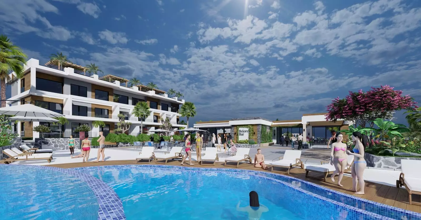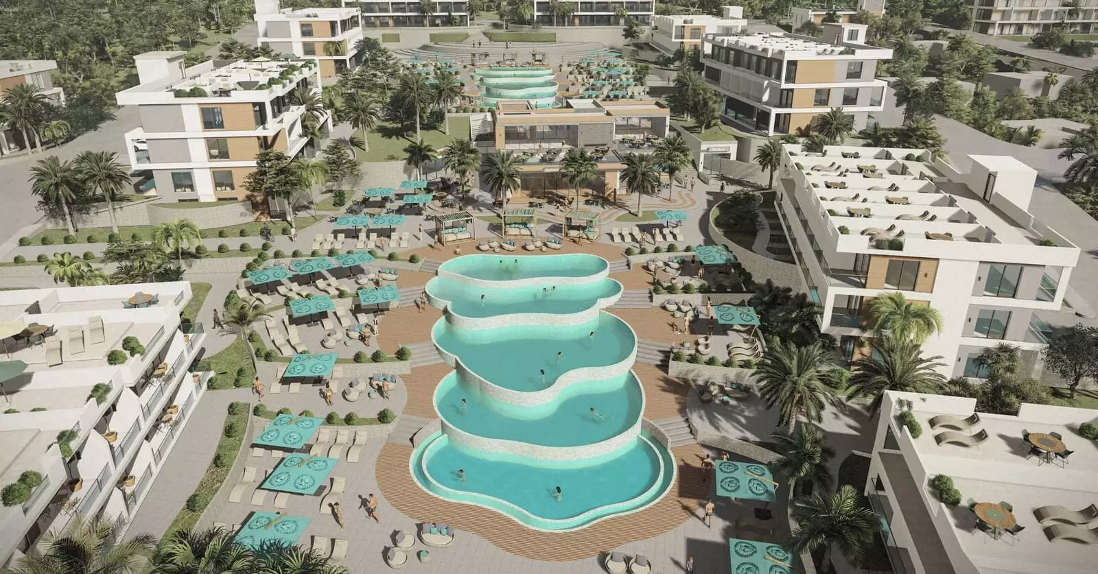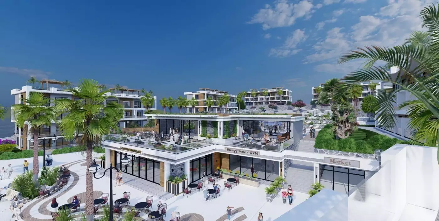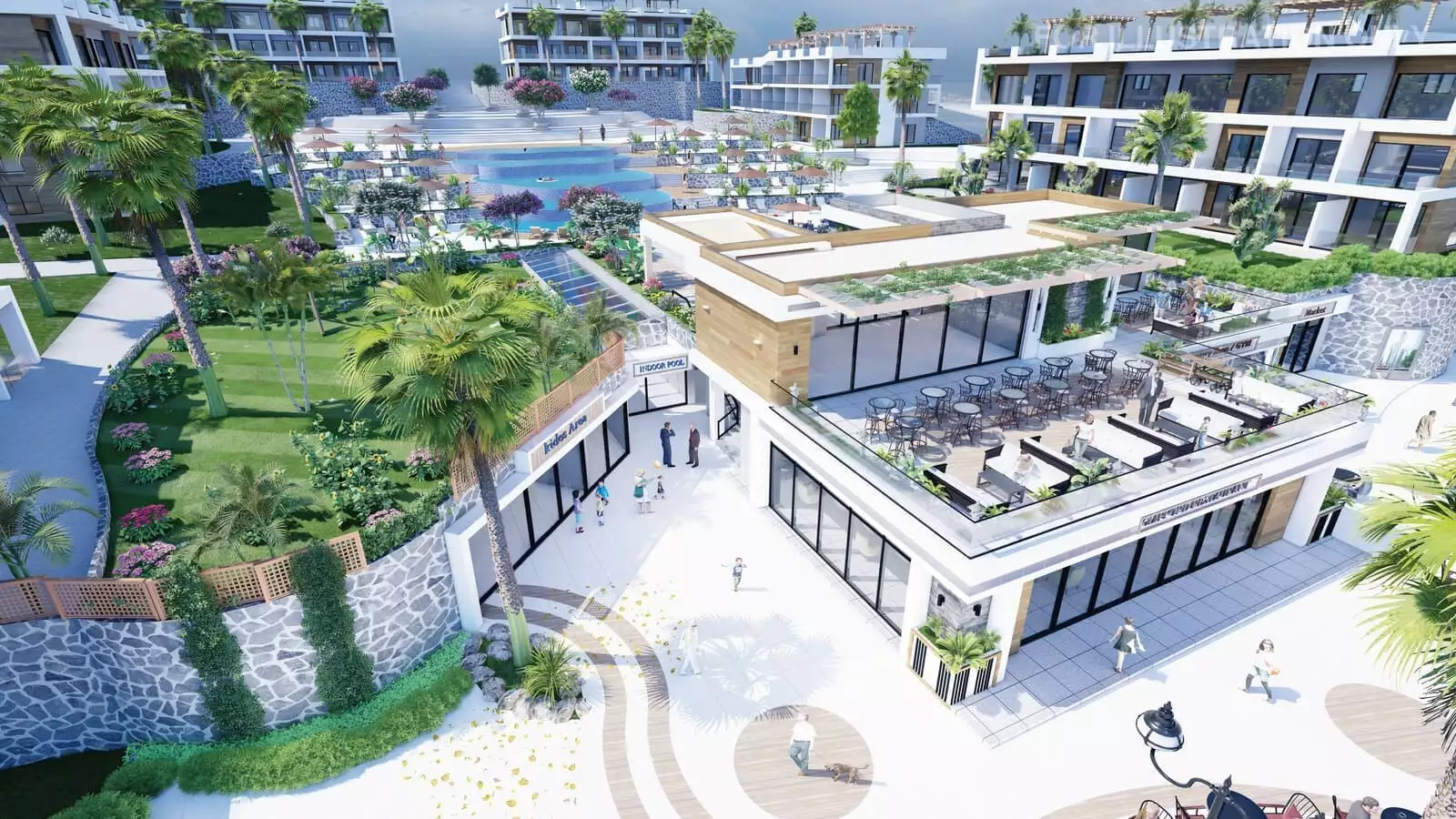 Что в комплексе: Внутри комплекса предусмотрена разнообразная инфраструктура, чтобы удовлетворить потребности и пожелания жителей. Включены такие удобства, как тренажерный зал, спортивная площадка, крытый и открытые бассейны, детская площадка, теннисный корт, велосипедная дорожка, ресторан, супермаркет, зоны для барбекю, пляжный бар, мини-гольф, сауна и бар. Кроме того, в комплексе также есть ресторан.