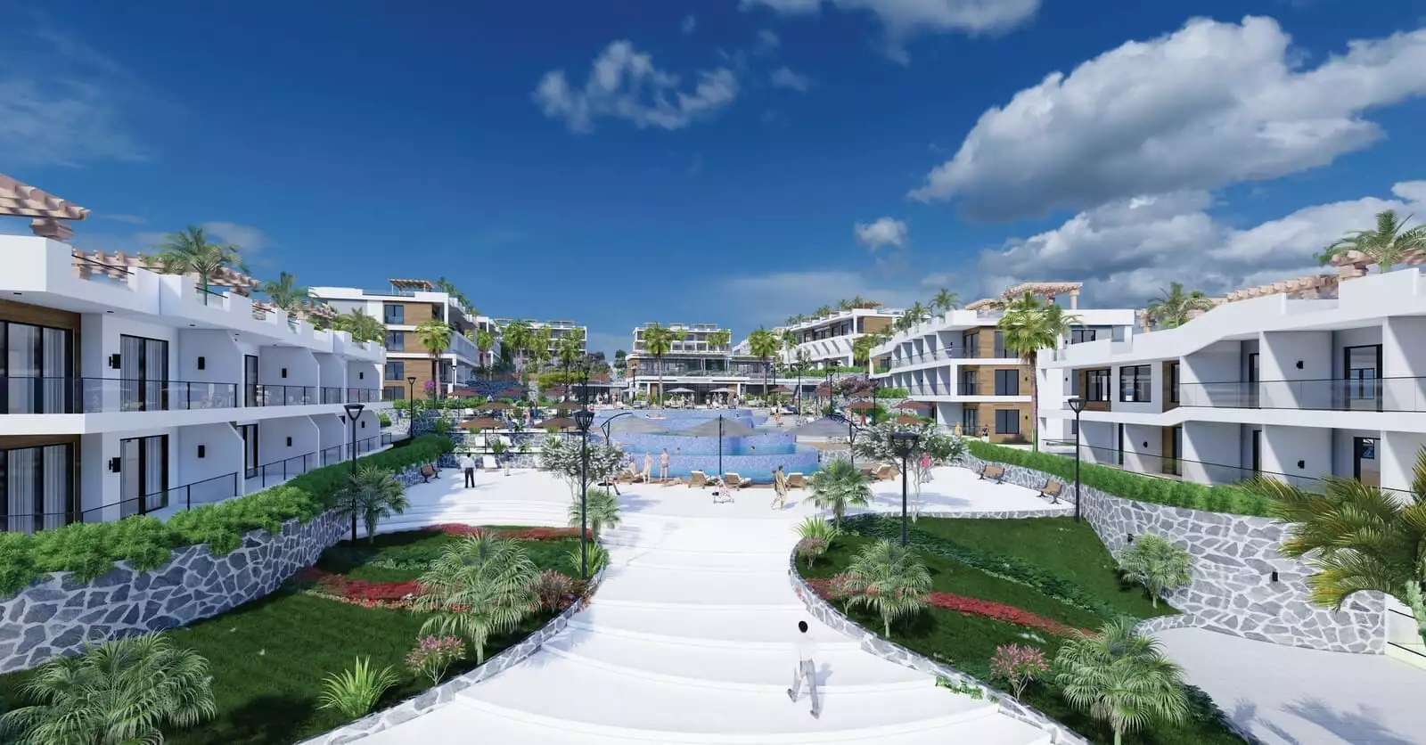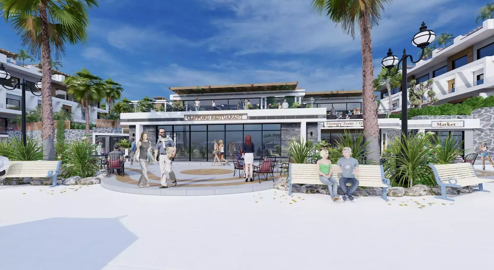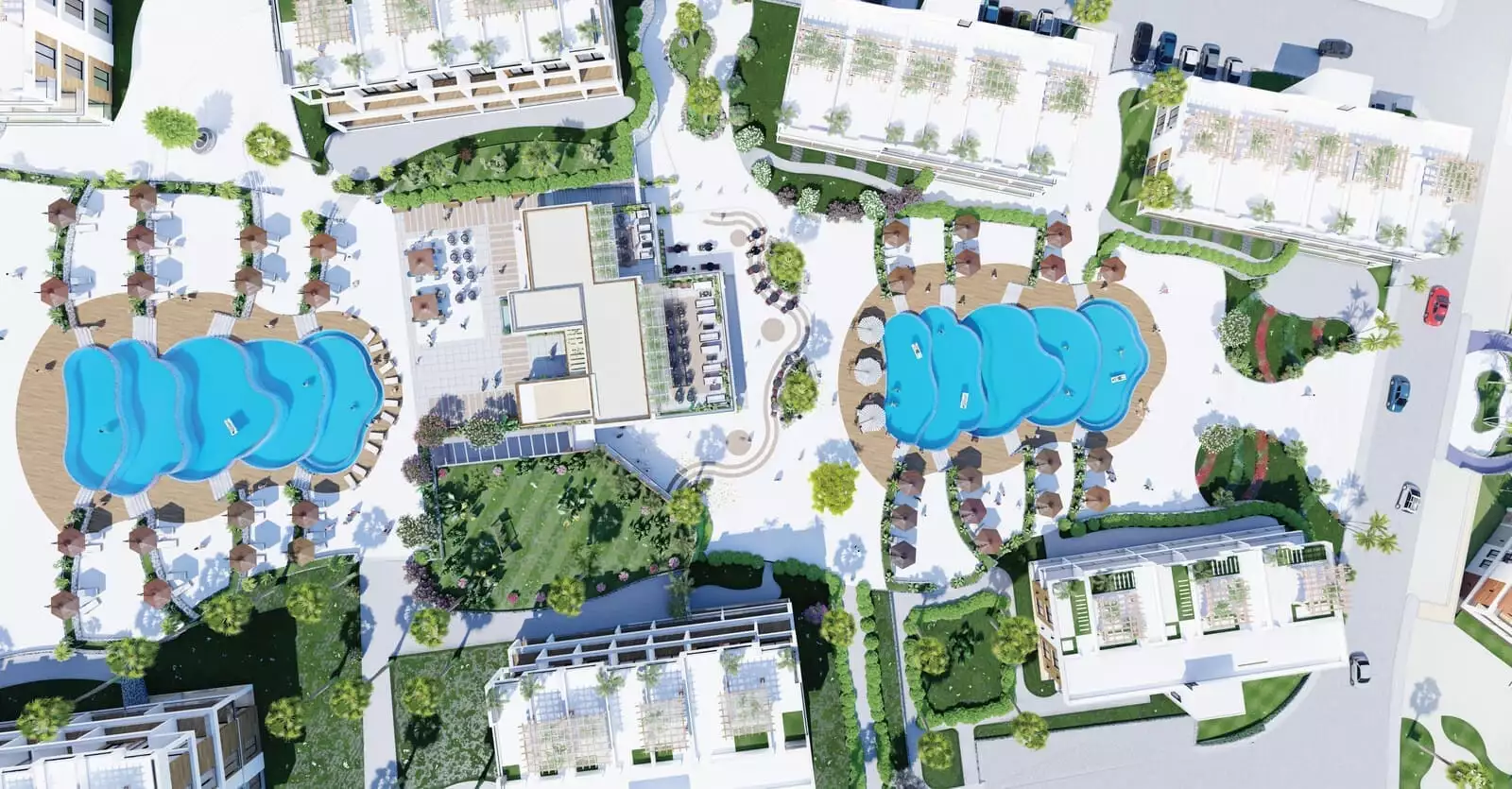 Что в комплексе: Внутри комплекса предусмотрена разнообразная инфраструктура, чтобы удовлетворить потребности и пожелания жителей. Включены такие удобства, как тренажерный зал, спортивная площадка, крытый и открытые бассейны, детская площадка, теннисный корт, велосипедная дорожка, ресторан, супермаркет, зоны для барбекю, пляжный бар, мини-гольф, сауна и бар. Кроме того, в комплексе также есть ресторан.