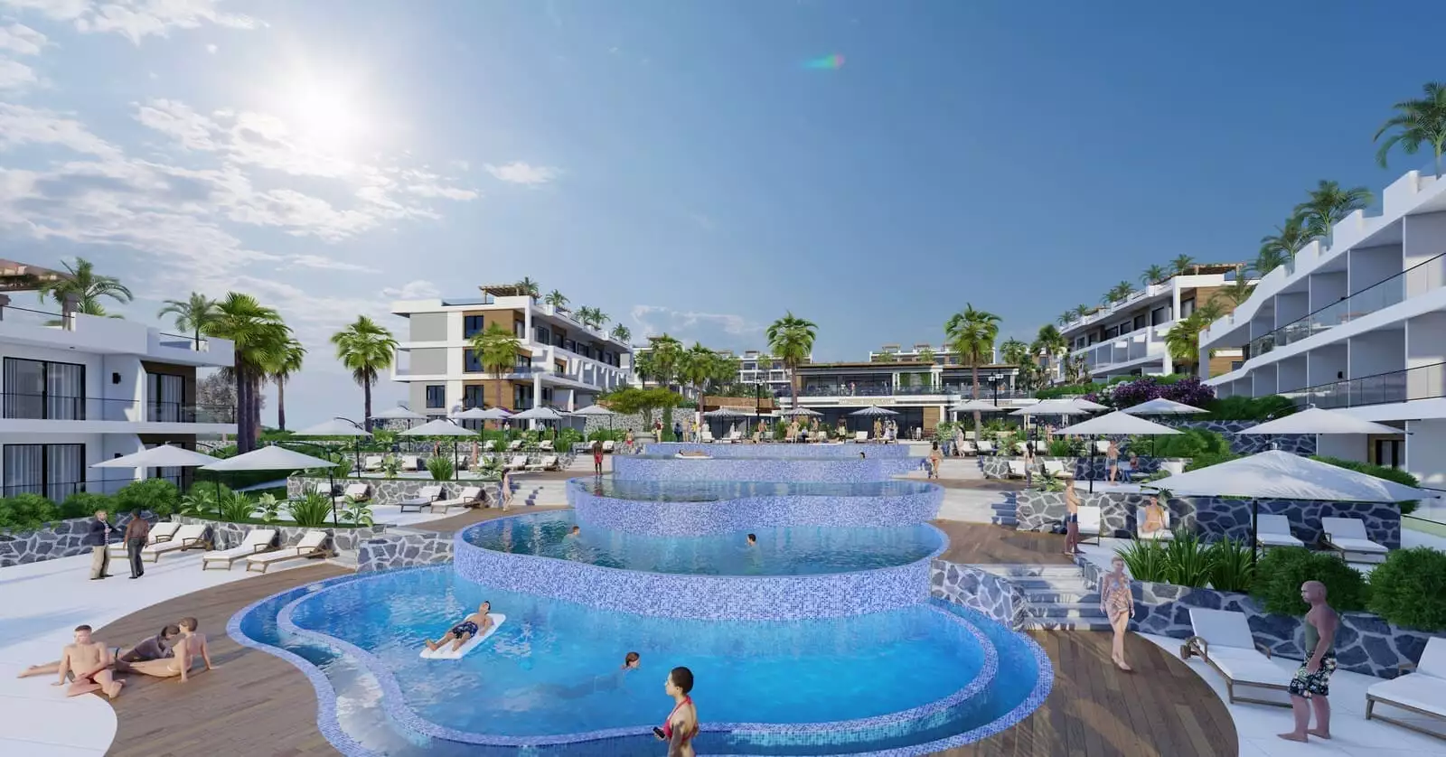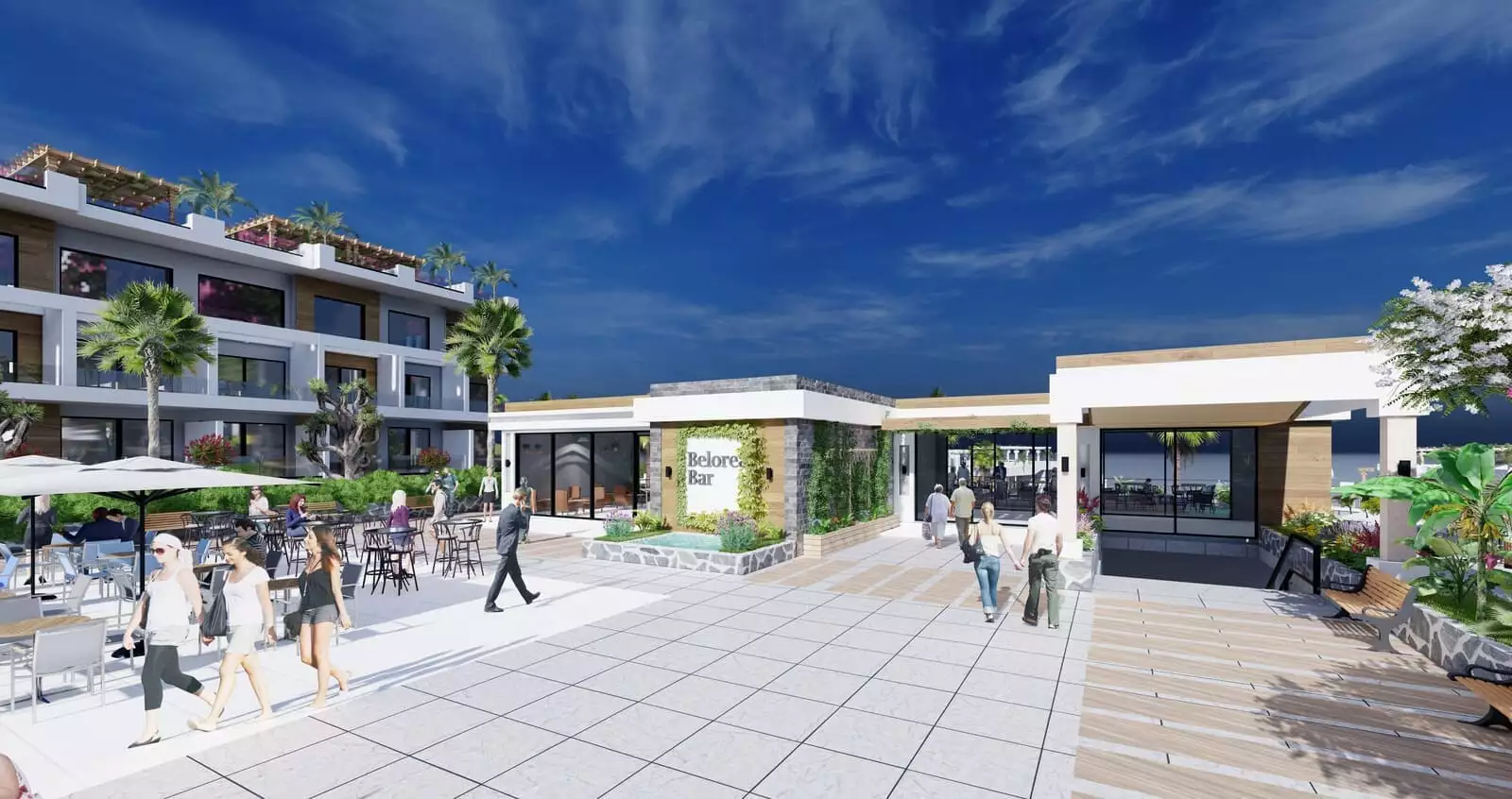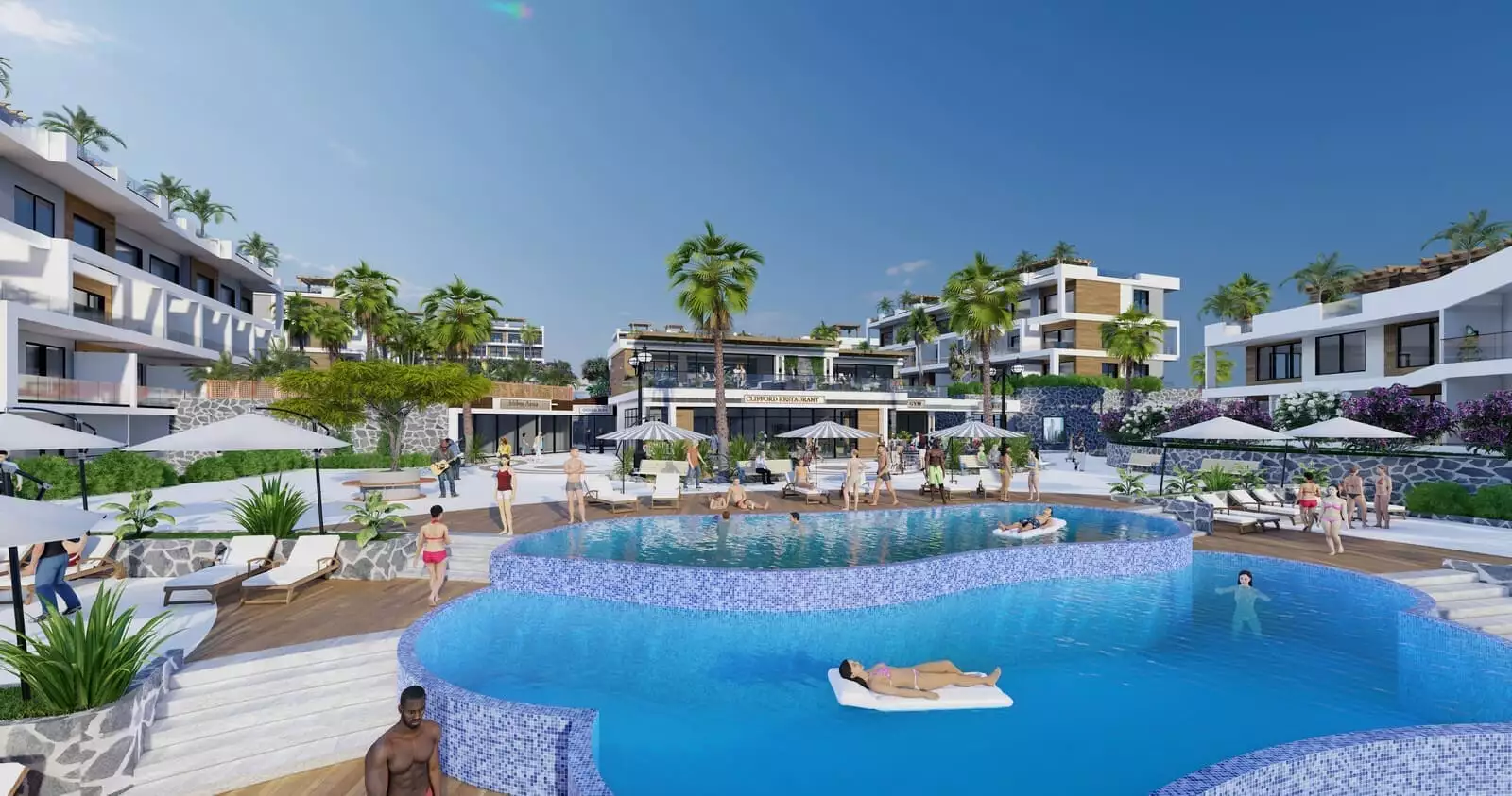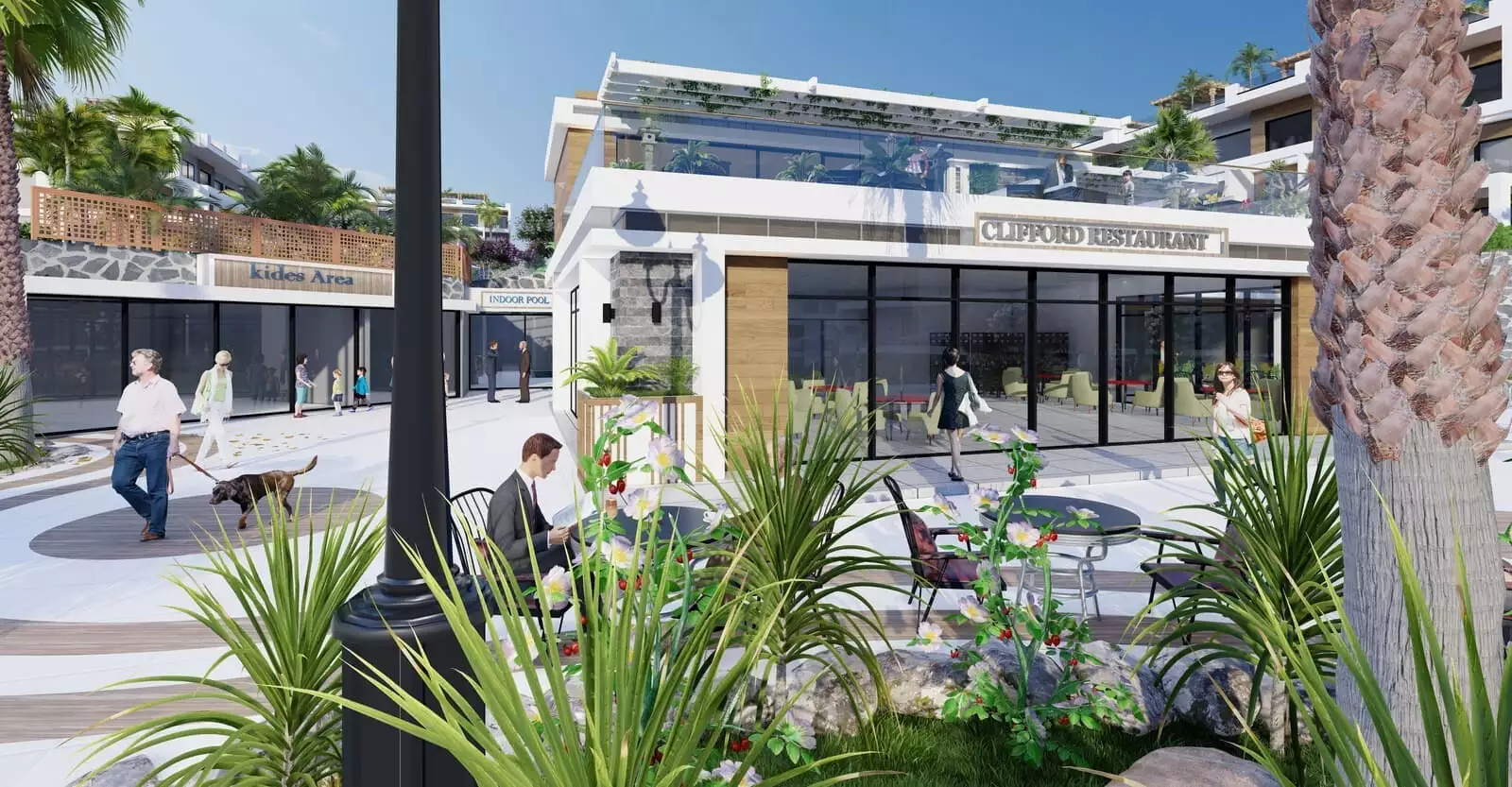 Что в комплексе: Внутри комплекса предусмотрена разнообразная инфраструктура, чтобы удовлетворить потребности и пожелания жителей. Включены такие удобства, как тренажерный зал, спортивная площадка, крытый и открытые бассейны, детская площадка, теннисный корт, велосипедная дорожка, ресторан, супермаркет, зоны для барбекю, пляжный бар, мини-гольф, сауна и бар. Кроме того, в комплексе также есть ресторан.