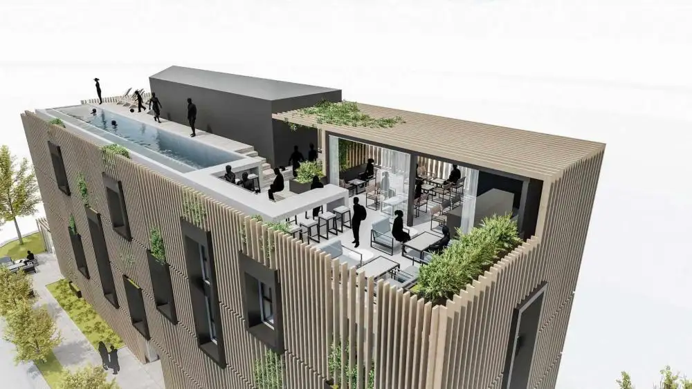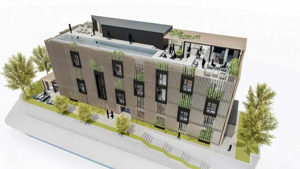 Утвержденный проект предусматривает в общей сложности 22 номера, включая 14 гостиничных номеров, 6 студийных апартаментов и 2 больших апартамента, дополненных зоной рецепции, зоной отдыха и многофункциональным пространством на первом этаже. Одним из ключевых моментов концепции является исключительно привлекательная крыша с баром, зоной отдыха и бассейном длиной около 20 метров. Спроектированное как современное пространство для отдыха на крыше с панорамным видом, это решение представляет собой уникальную и инновационную концепцию для рынка Риеке, предлагая четкий коммерческий потенциал и сильную дифференциацию в сегменте городских и премиум краткосрочных размещений.