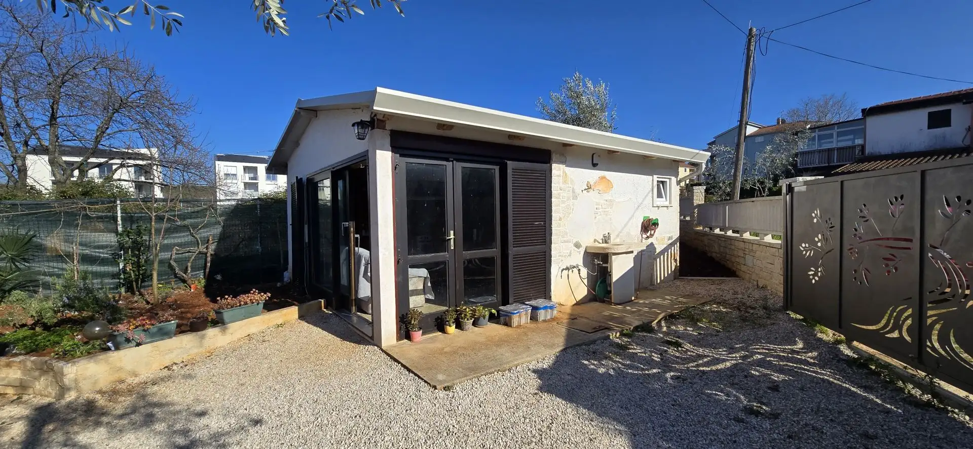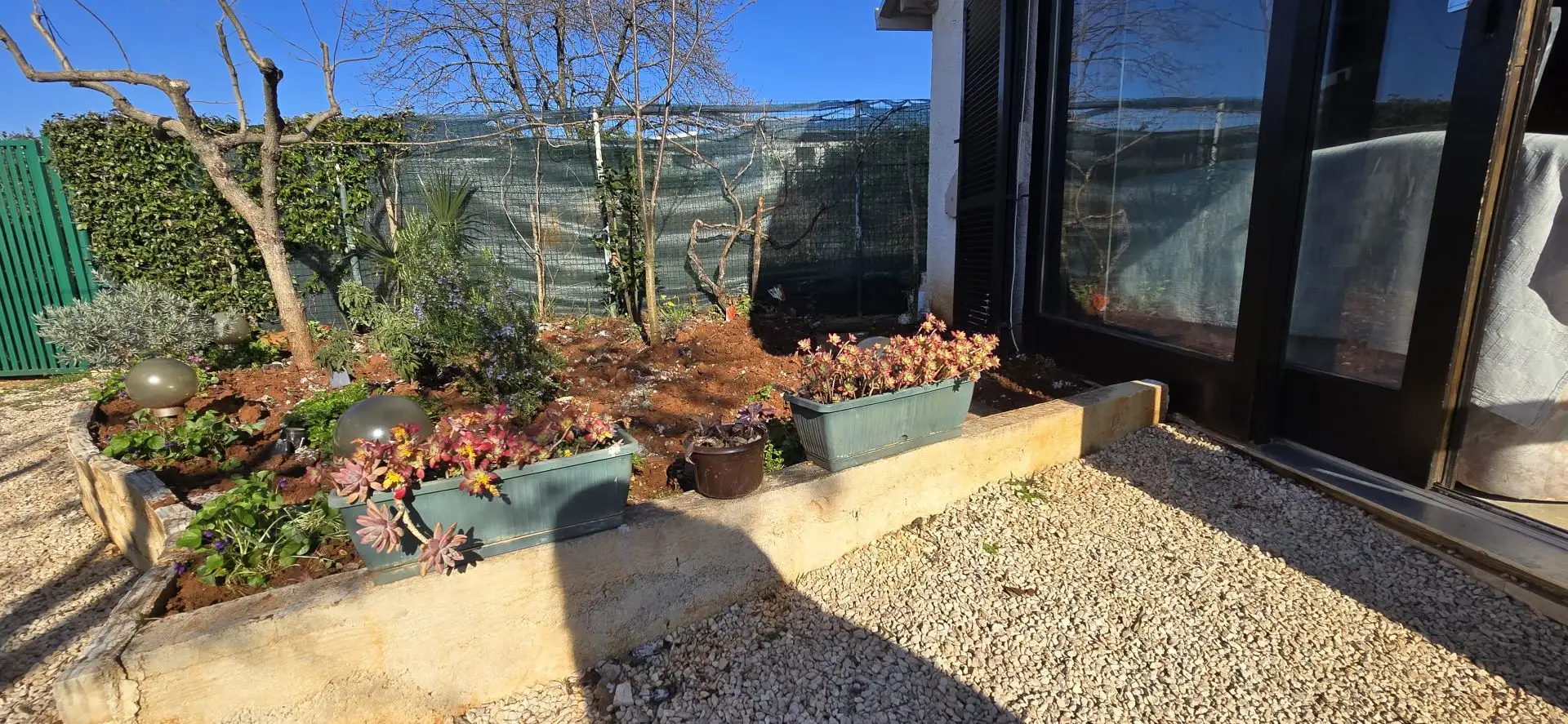 - Очаровательный сад с истрийской таверной площадью 30 м2, двумя складскими помещениями (по 12,5 м2 каждое) и двумя парковочными местами.