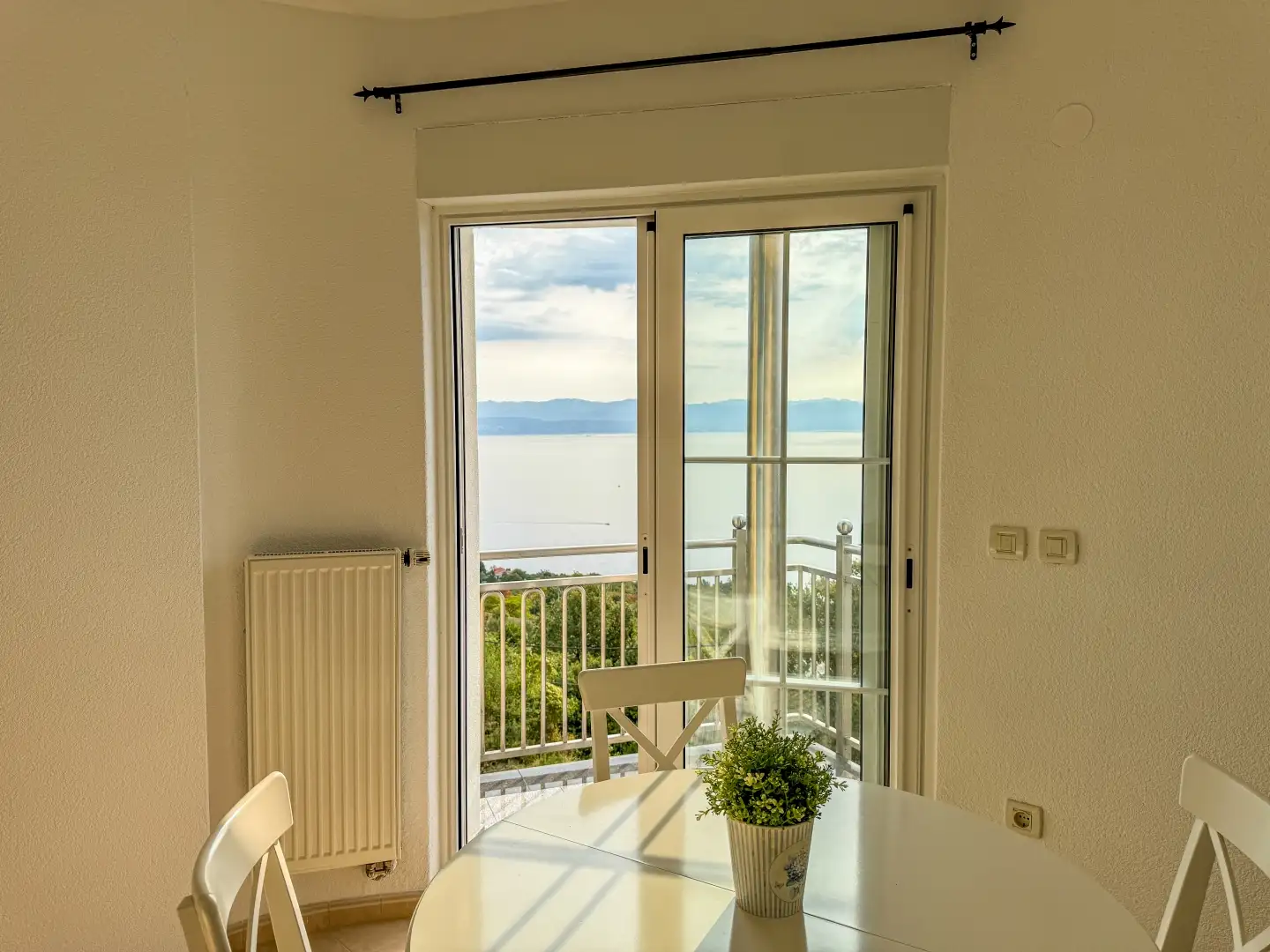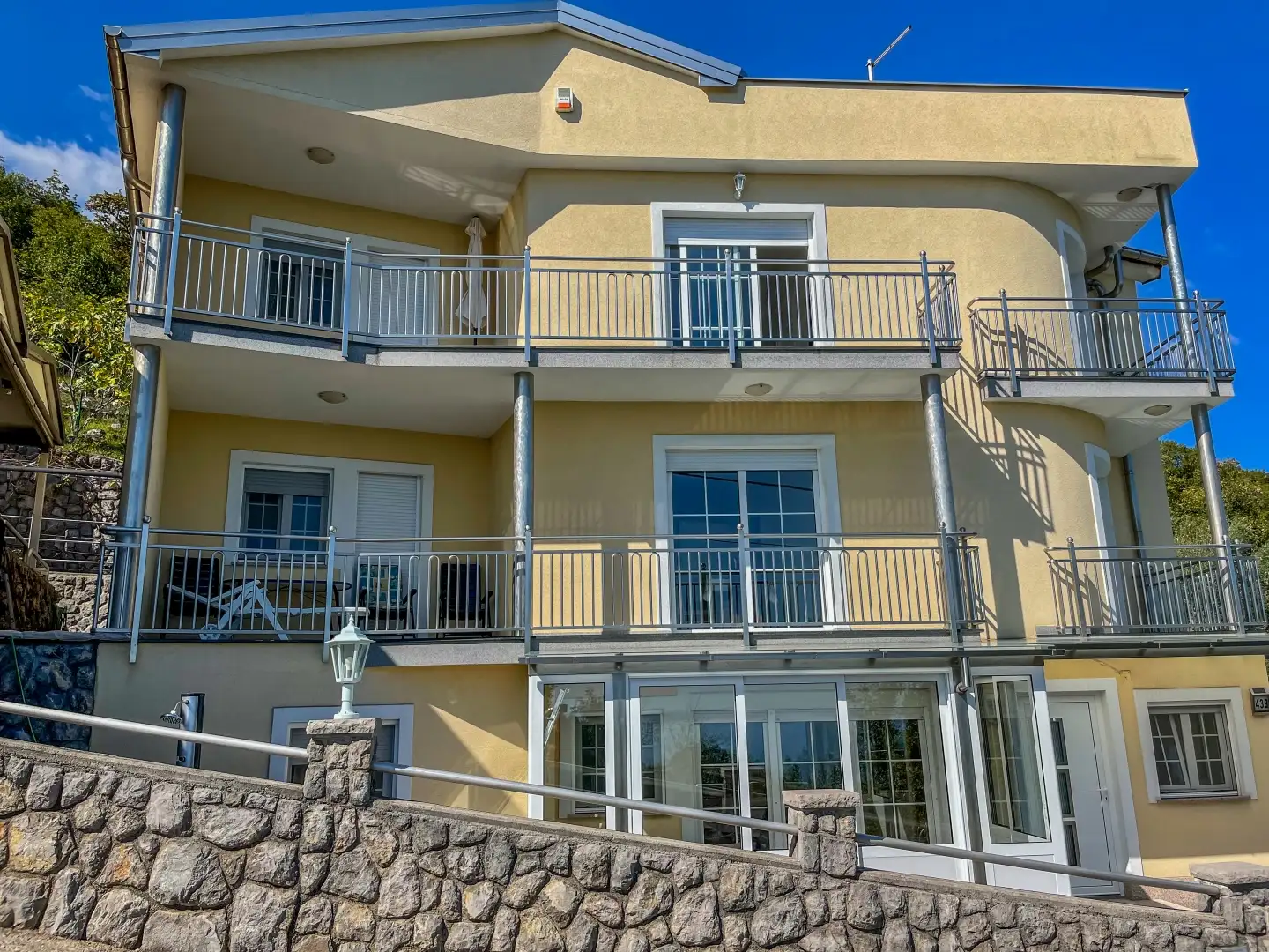 Недвижимость включает в себя 7 комнат, в том числе 4 спальни, 3 ванные комнаты и просторные жилые зоны с кухнями. Тёплый пол и камин повышают комфорт и атмосферу каждого апартамента. Террасы, выходящие на юг, и верхний сад обеспечивают непрерывный вид на залив Кварнер, в то время как участок площадью 600 м² включает в себя садовый домик, зону для барбекю и достаточно места для бассейна.