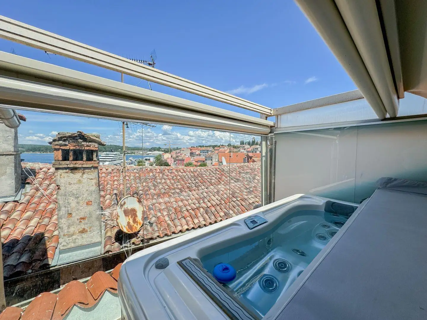 Прекрасно отремонтированный и меблированный дом в самом центре Ровиня, недалеко от набережной, с террасой на крыше с видом на море и джакузи.