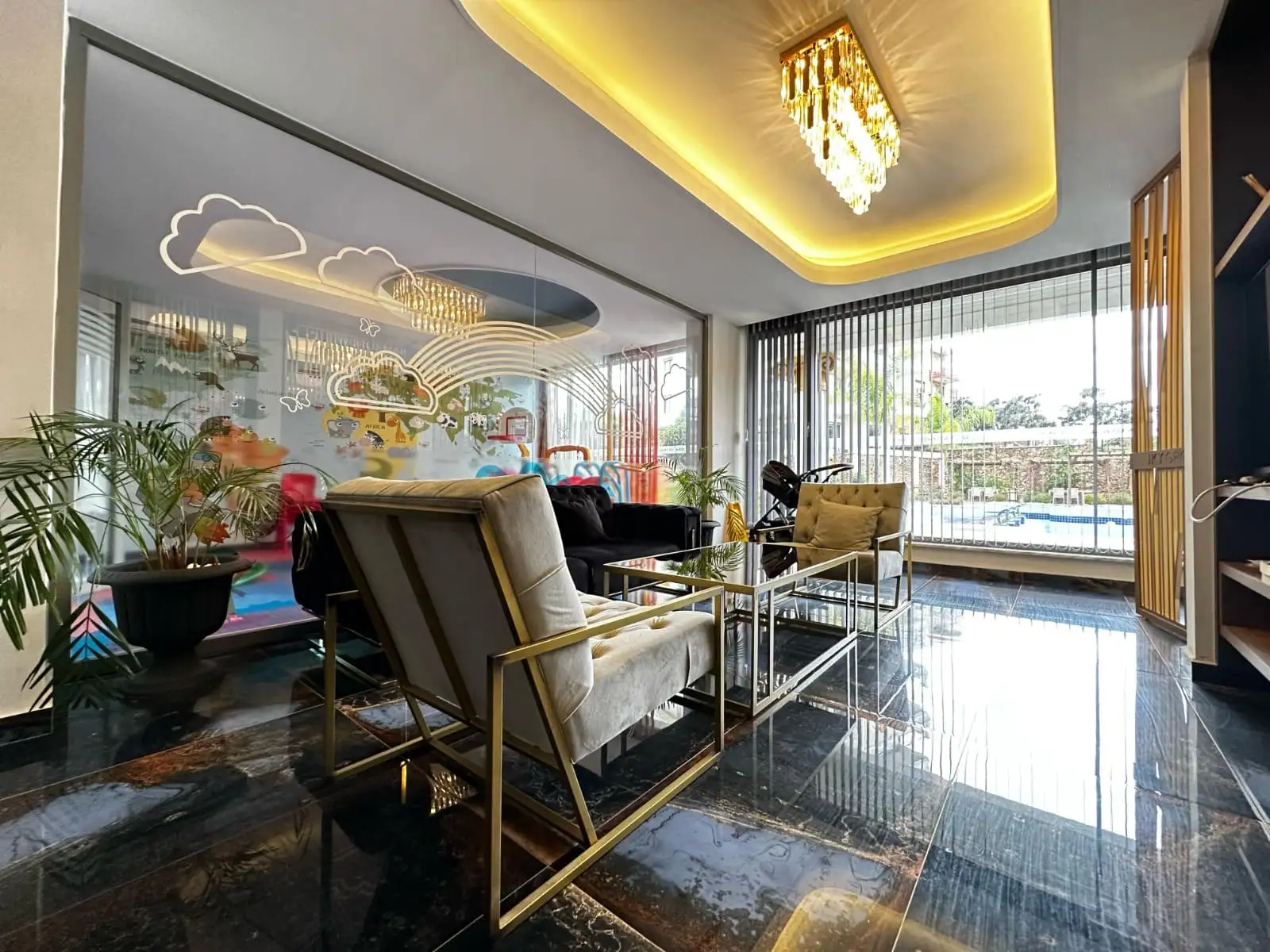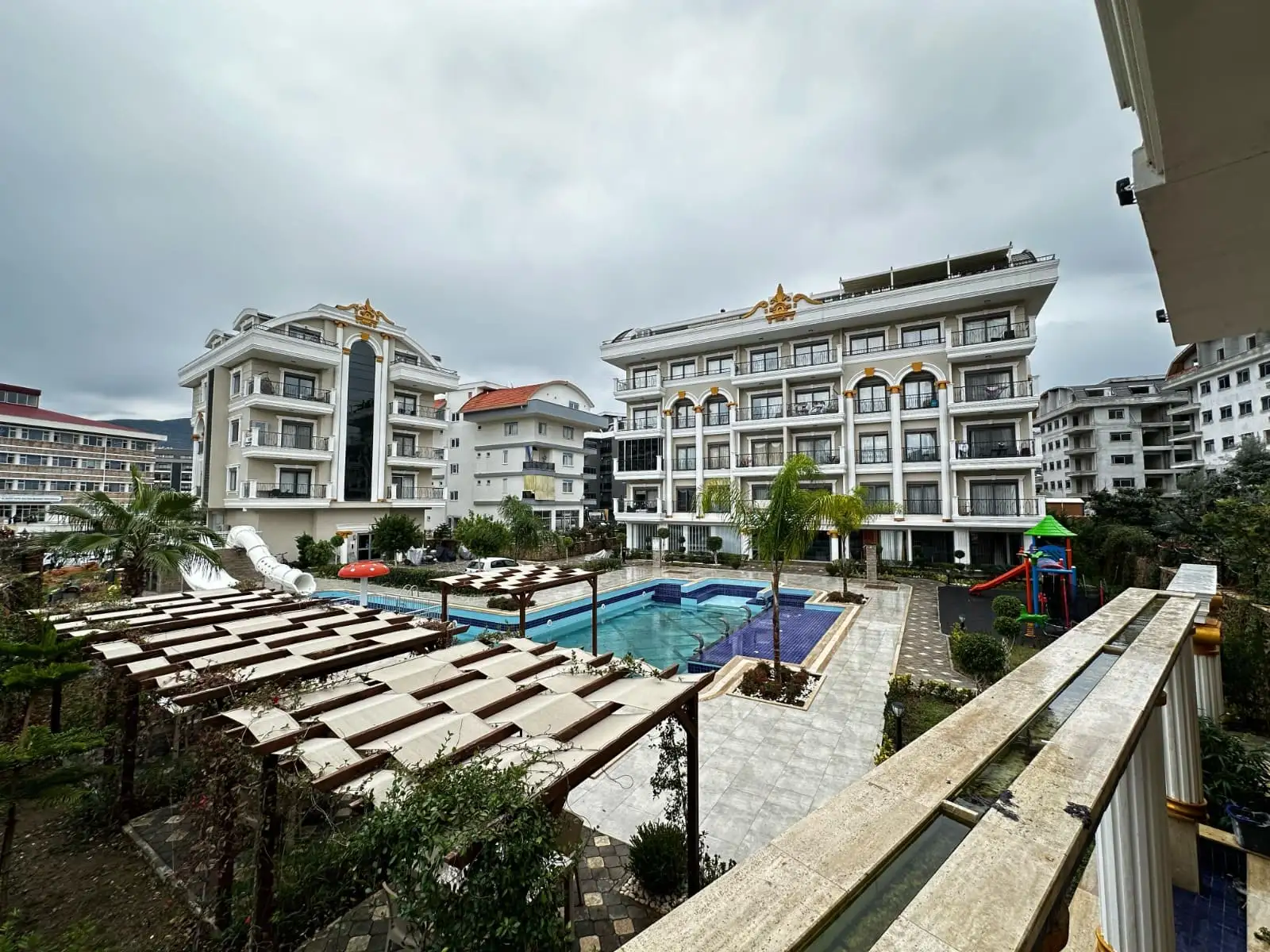 Что в комплексе: Комплекс предлагает полный спектр премиальных удобств: турецкий хамам, сауна, паровая комната, джакузи, закрытый и открытый бассейны, аквапарк, BBQ-зона, беседки для отдыха, фитнес-центр, кинотеатр, детский клуб, игровая площадка, генератор, открытая парковка — всё создано для комфортной жизни круглый год.