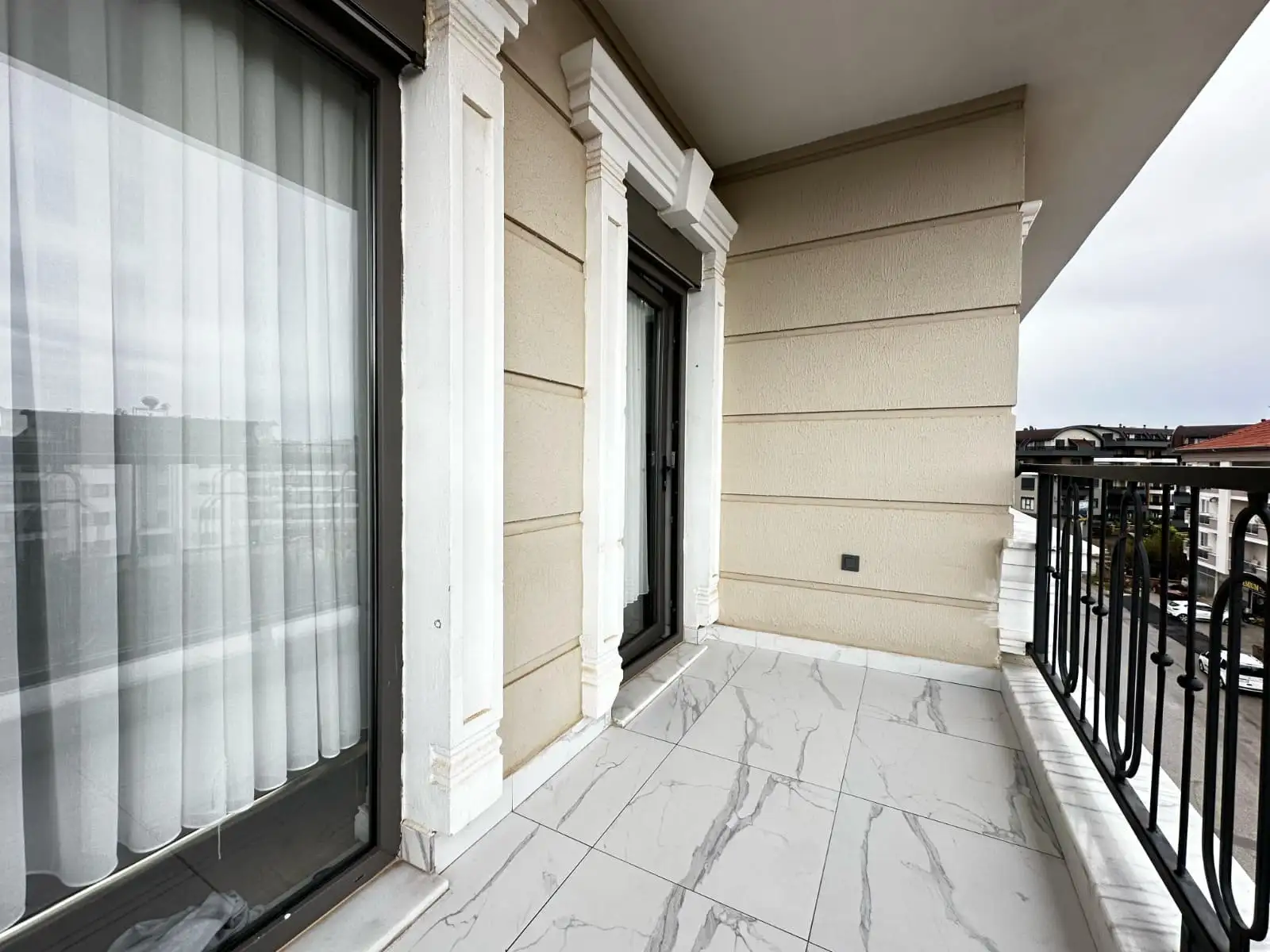 Внутри: Квартира продается без мебели — это прекрасная возможность оформить интерьер по своему вкусу. Просторная гостиная и зонально отделенной кухней, 4 спальные комнаты и балконы с видом на уютный внутренний двор, горы и крепость Алании