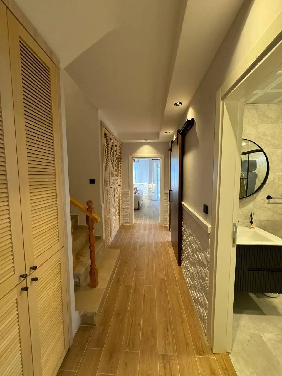 Внутри: Дуплекс оборудован новой мебелью и техникой Siemens, что избавляет новых владельцев от лишних хлопот. Функциональная планировка с четырьмя спальнями и просторной гостиной делает жилье удобным для семьи. Вместительная гардеробная позволяет хранить вещи без лишних шкафов, а светлые комнаты создают ощущение простора.