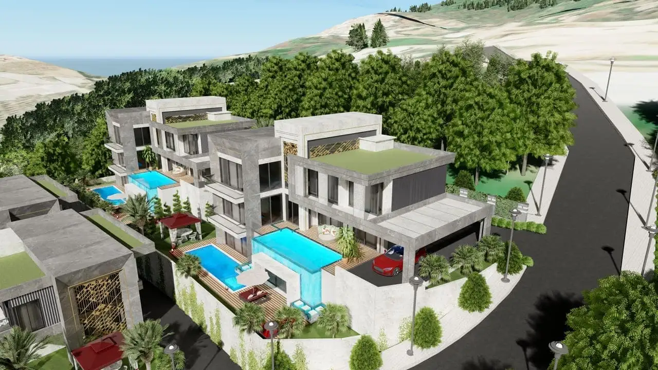 Что вы получаете: Виллы 4+1 и 4+2 премиум класса с собственным бассейном в горах района Каргыджак.