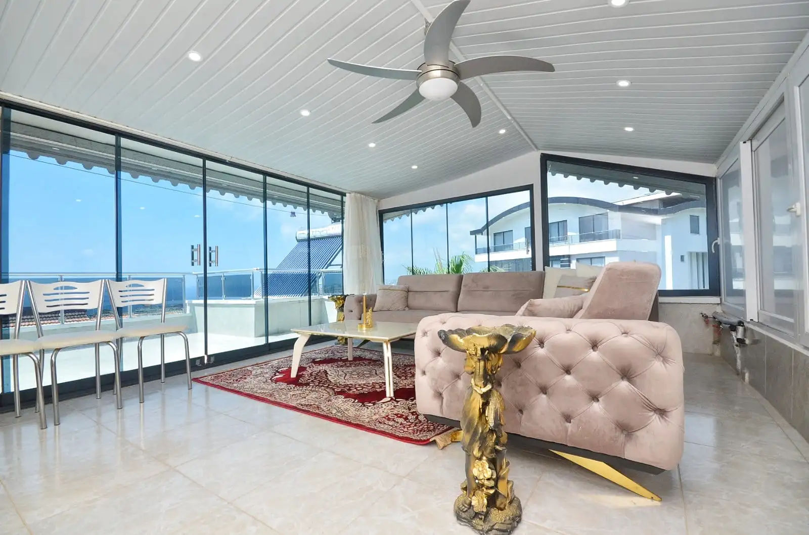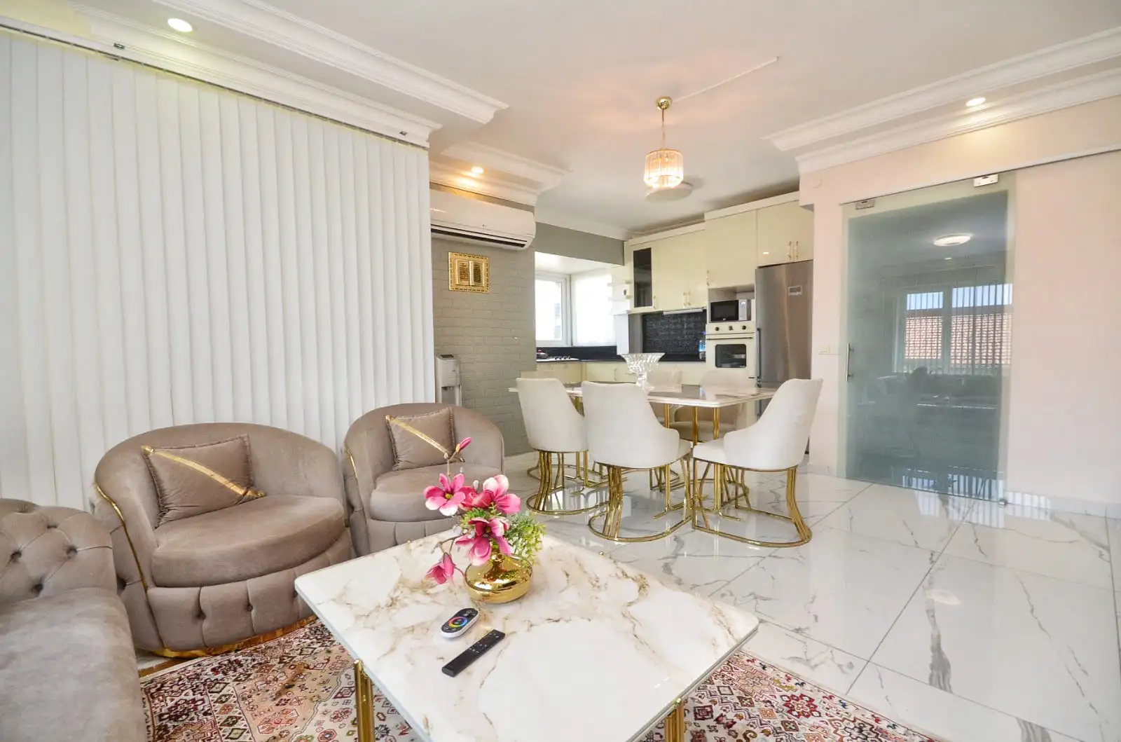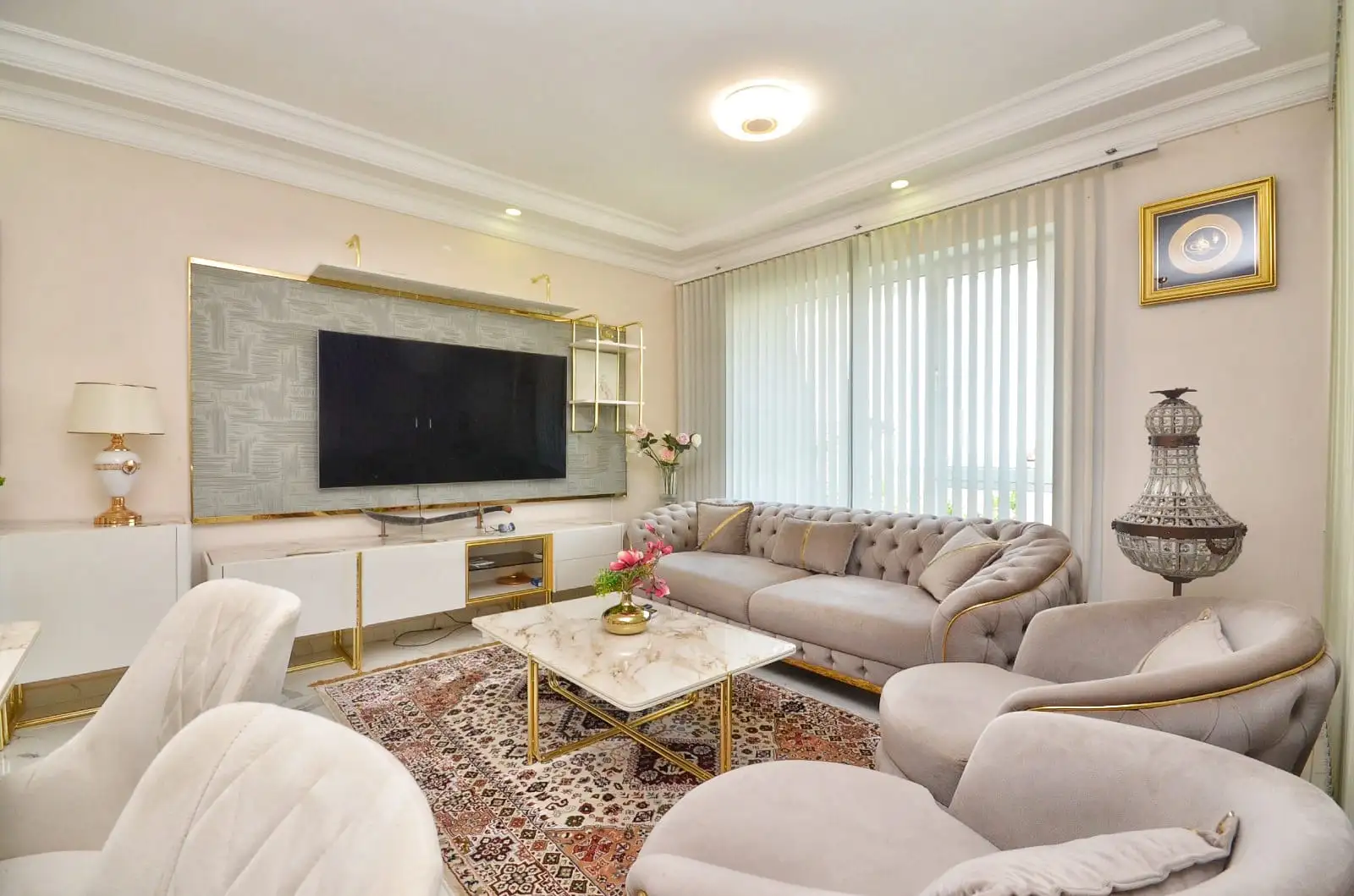 175 м² общей площади, планировка 3+2, два санузла и два WC, светлая гостиная, просторная кухня, три жилых уровня, одна терраса и один балкон, виды на крепость и море, удобное зонирование, готовность к проживанию.