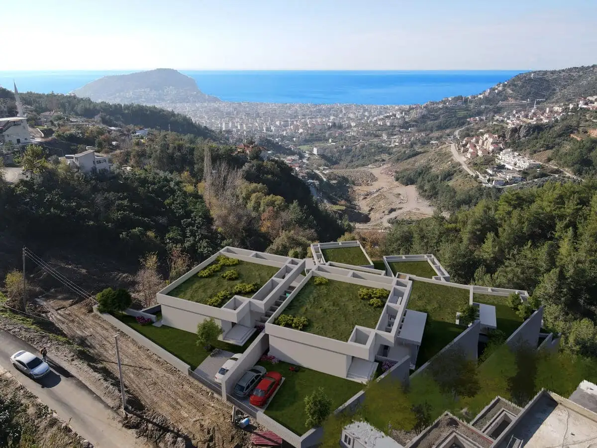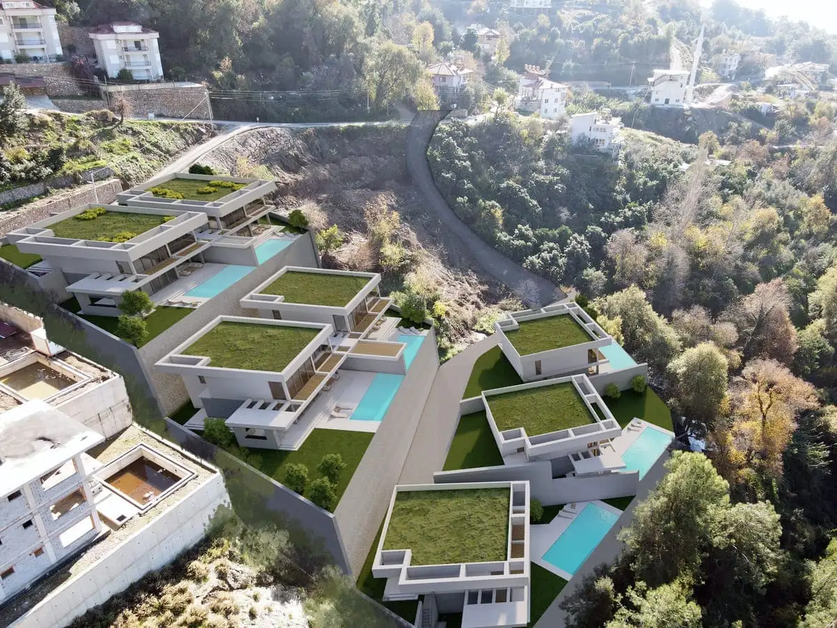 Что вы получаете: Виллы класса люкс с панорамным видом в горах района Тепе, Алания.