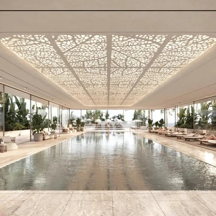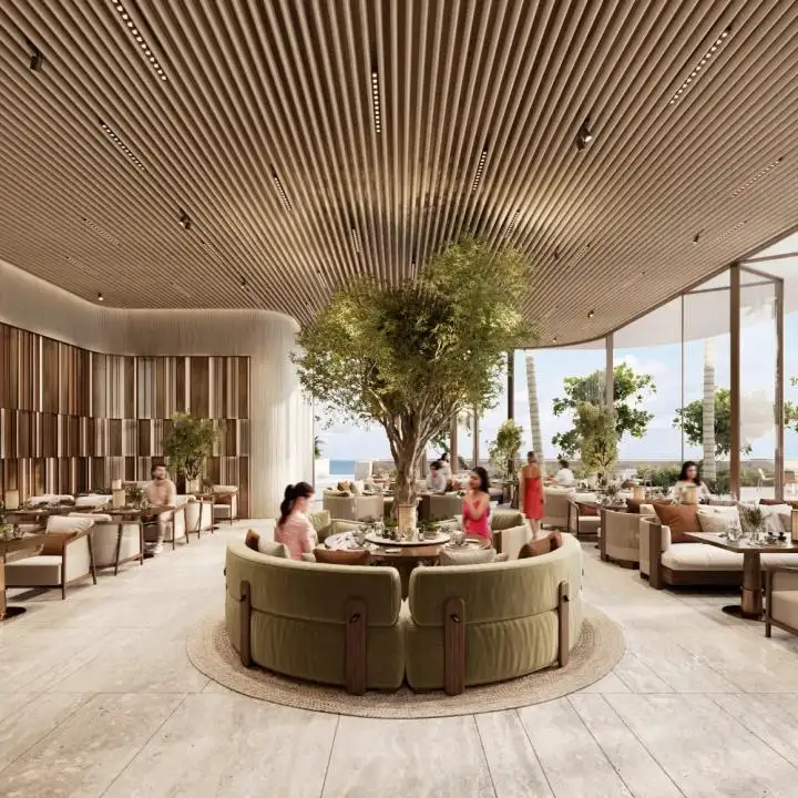 Удобства: открытый инфинити-бассейн и огромный бассейну внутри здания, двойные виды 270°, детская игровая зона, частные лифты в двухуровневых резиденциях, частный пляж, пляжный клуб с лаунджем, спа-услуги, груминг, частные бассейны на террасах апартаментов.