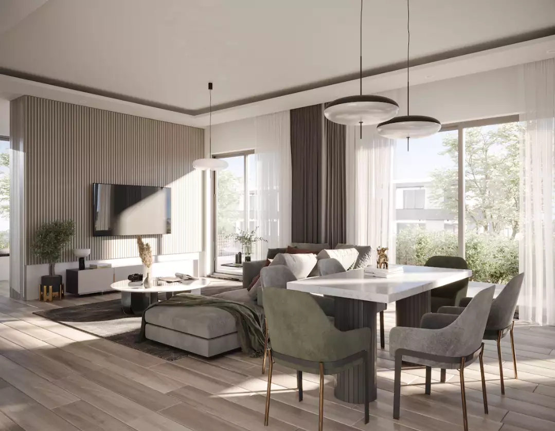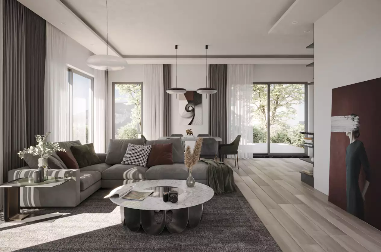 Виллы предлагаются в полной чистовой отделке, с высококачественными окнами, дверями, кухонной мебелью и готовыми ванными комнатами.