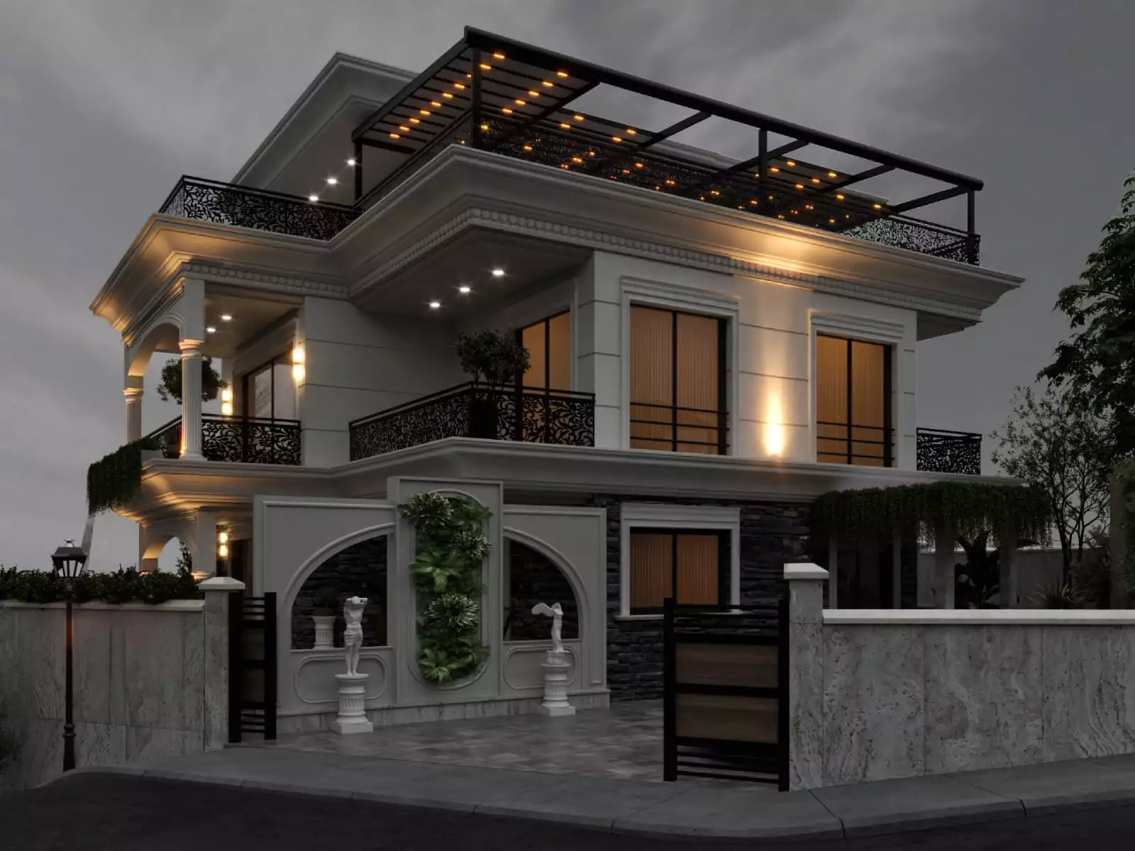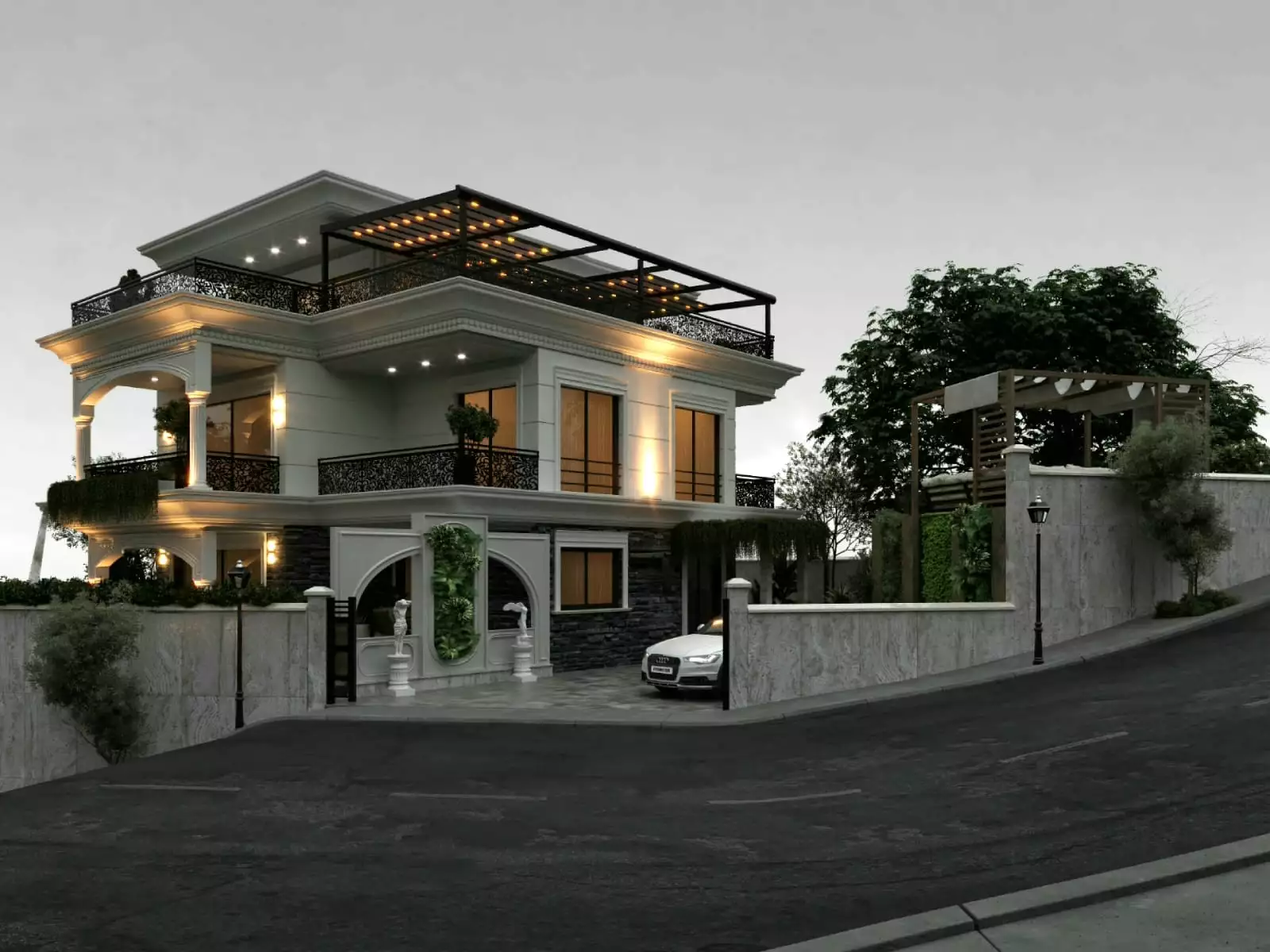Внутри: Вилла будет состоять из 4 этажей общей площадью 425 м2. Для комфортного перемещения между этажами, будет установлен лифт.
