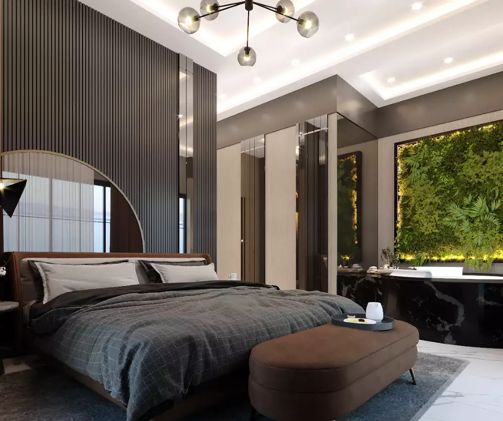 Планировка 4+1 с четырьмя отдельными спальнями, гостиной комнатой с кухней, гардеробом, мастер спальней, мастер ванной комнатой, а также террасой.