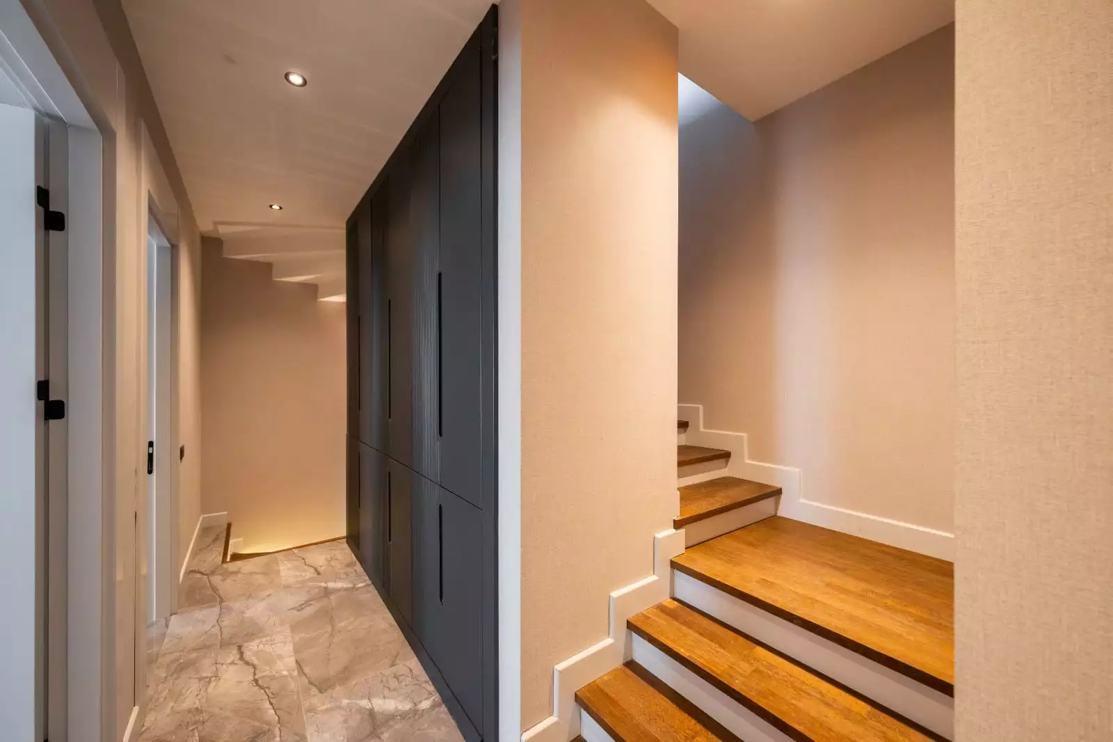 Каждая вилла будет сдаваться с полной чистовой отделкой. Стены будут изготовлены из термостойких и влагостойких материалов. Во всех комнатах будут установлены натяжные потолки с точечной подсветкой. Полы выполнены из керамики, присутствует система подогрева пола. С террас каждой из вилл будет открываться панорамный вид на Аланию и Средиземное море.