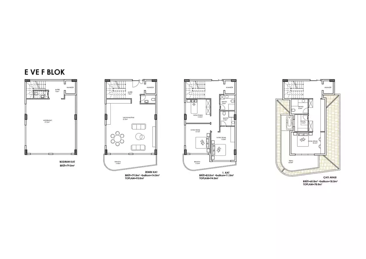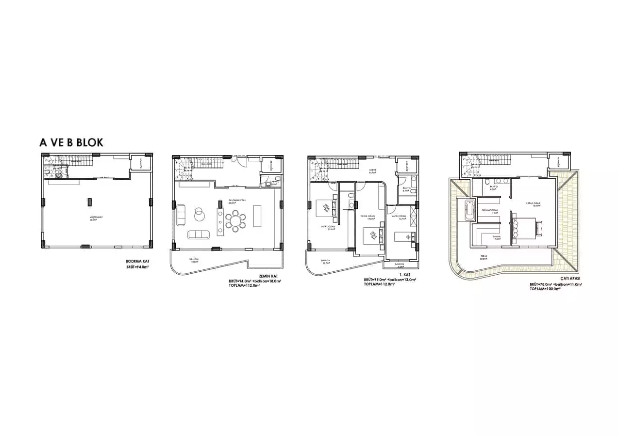 Вилла просторной планировкой 4+1, площадью от 344 м2 до 419 м2 позволяет разместить в себе гостиную, совмещенную с кухней, 4 спальни, 4 санузла, 2 балкона.