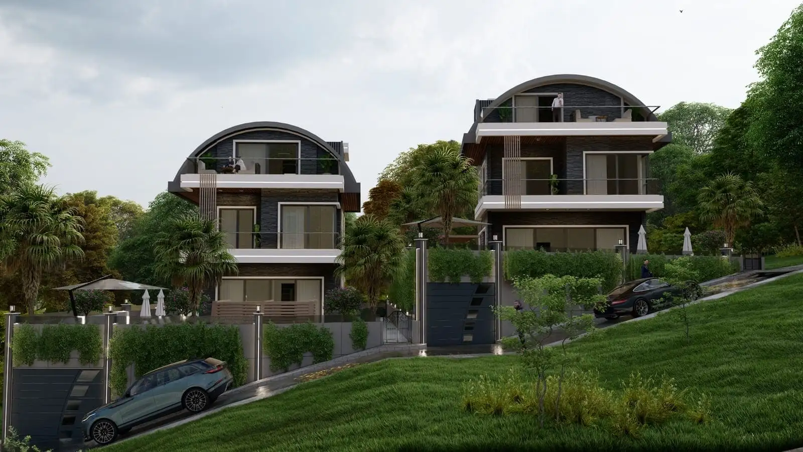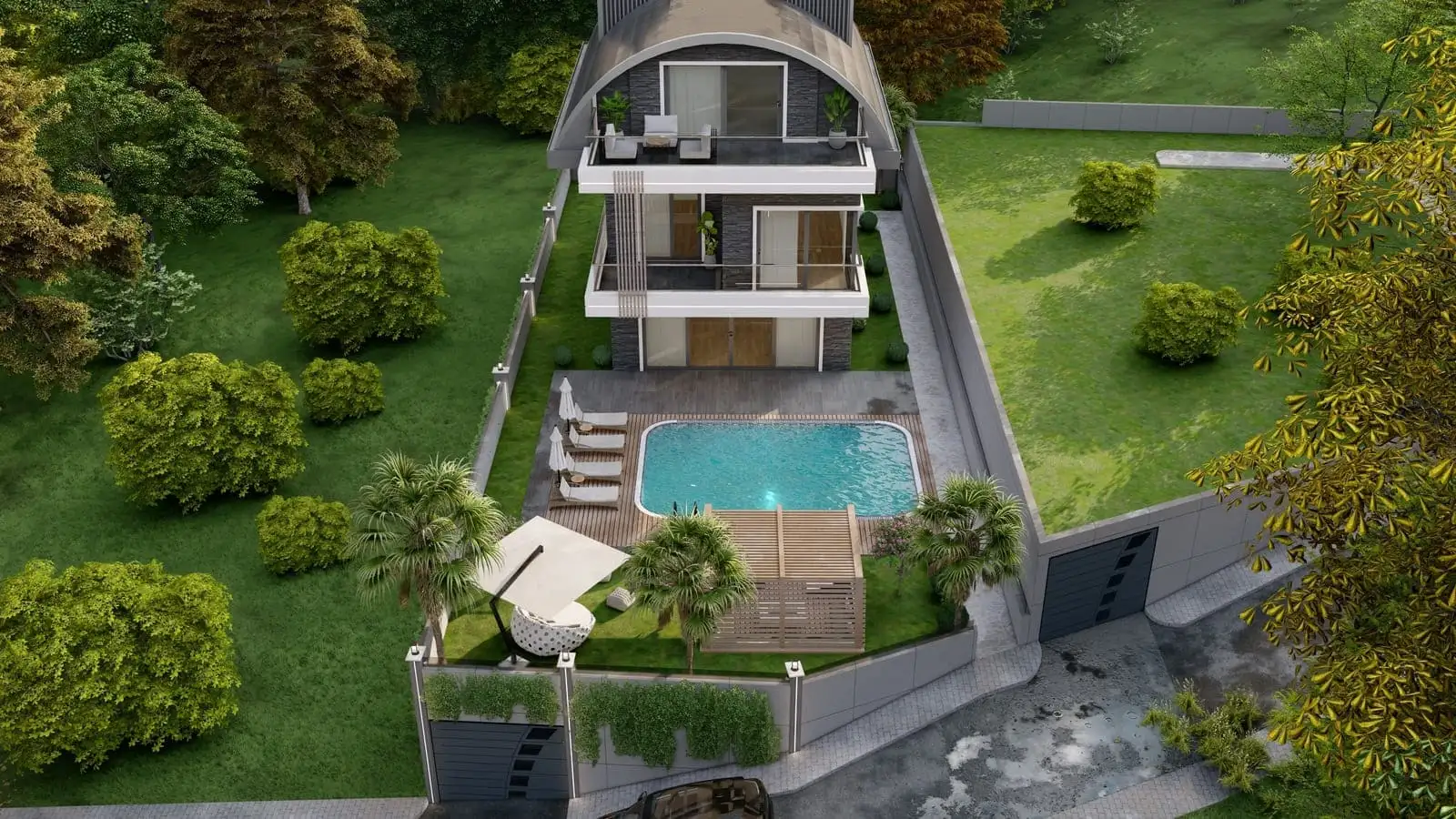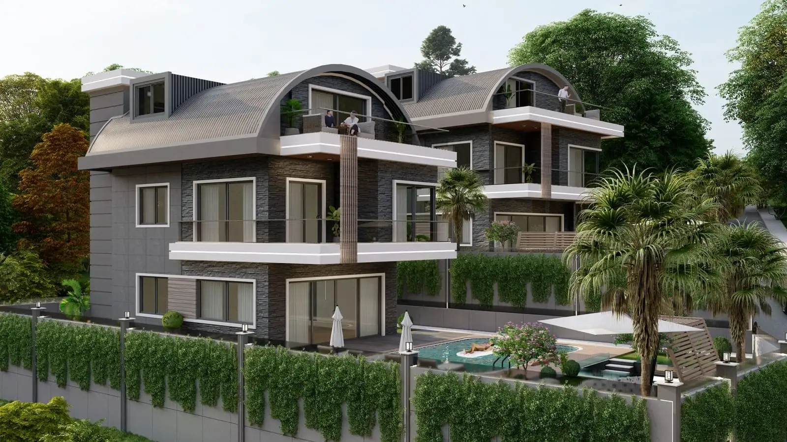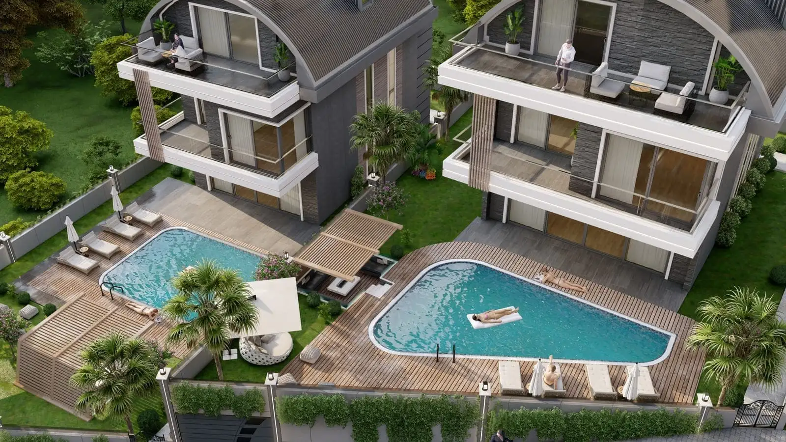 Что в комплексе: Комплекс состоит из 2 отдельно стоящих вилл с частными бассейнами. На территории виллы будет расположен открытый бассейн, беседка для отдыха и барбекю.