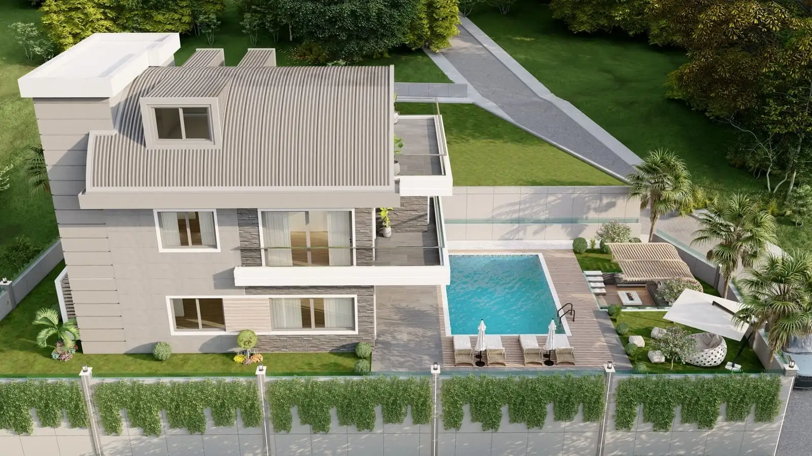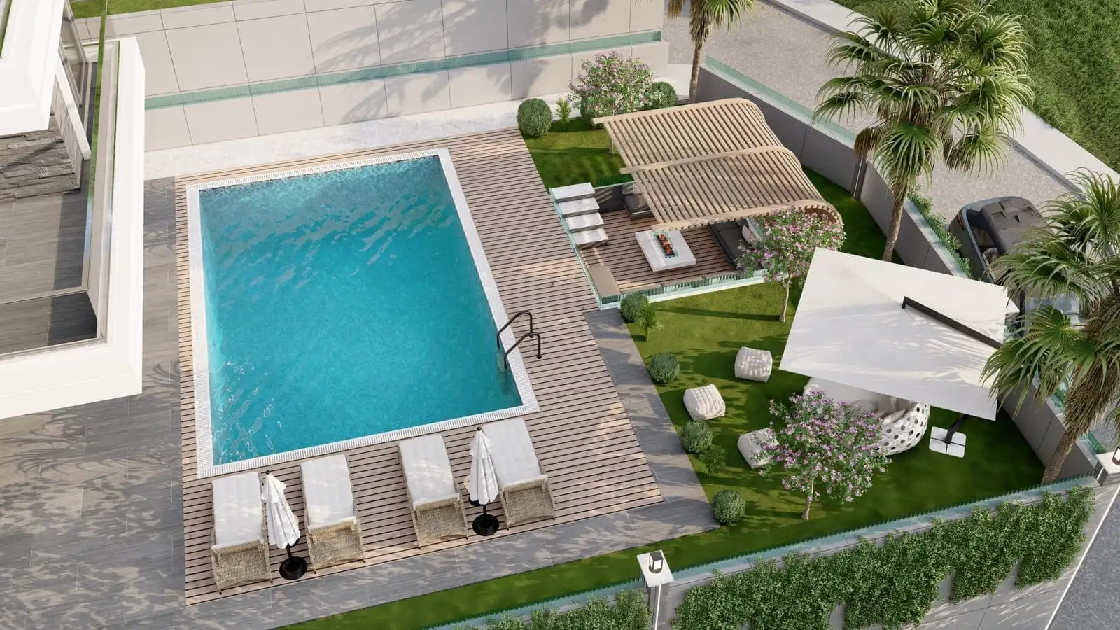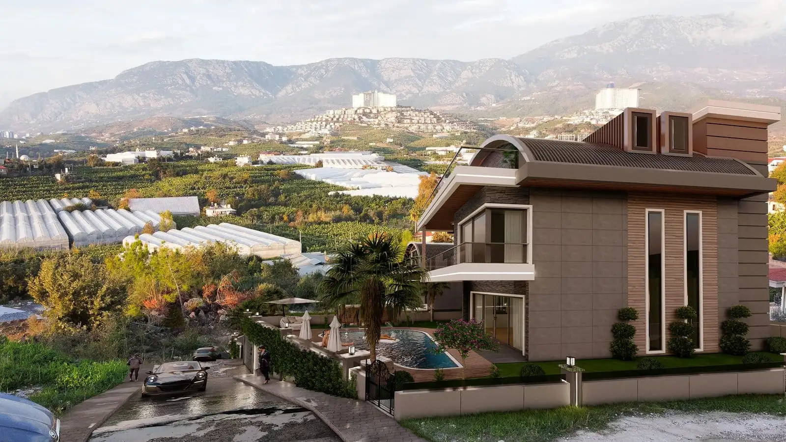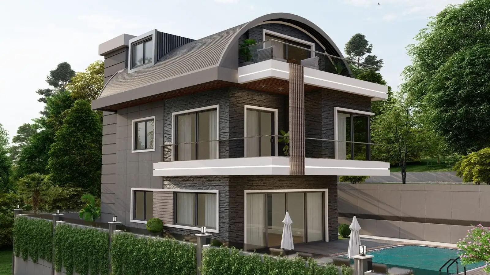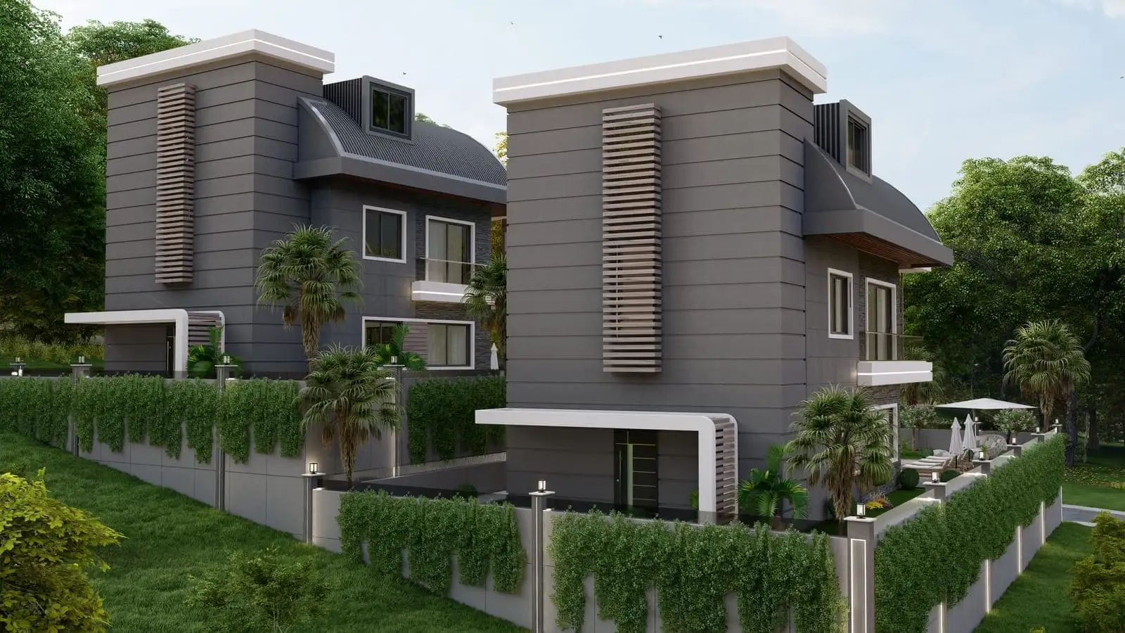 Что в комплексе: Комплекс состоит из 2 отдельно стоящих вилл с частными бассейнами. На территории виллы будет расположен открытый бассейн, беседка для отдыха и барбекю.
