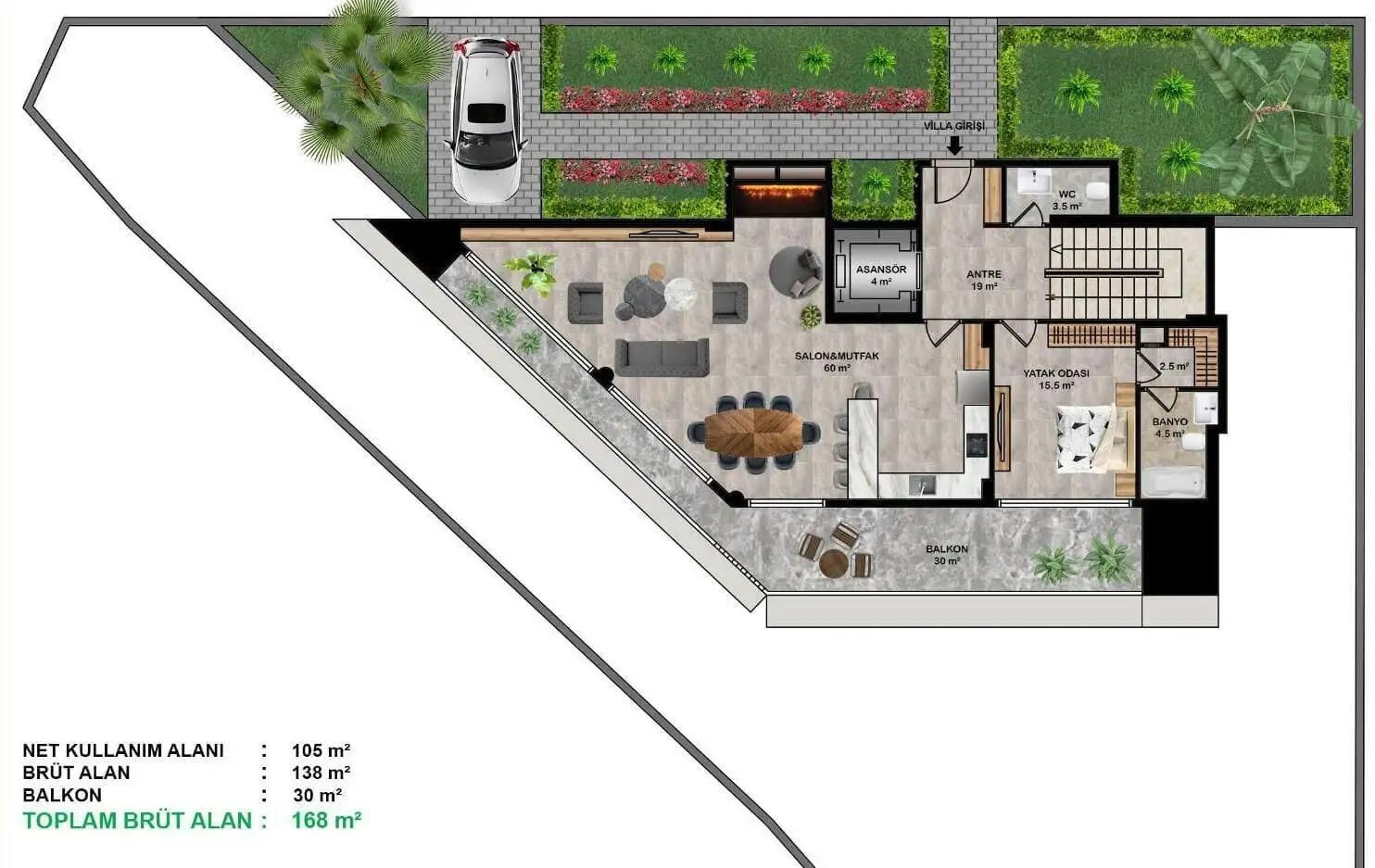 Внутри: Виллы представлены планировкой: